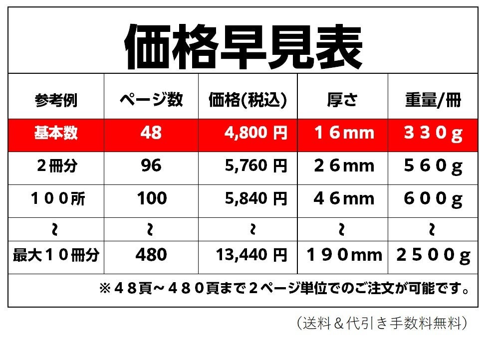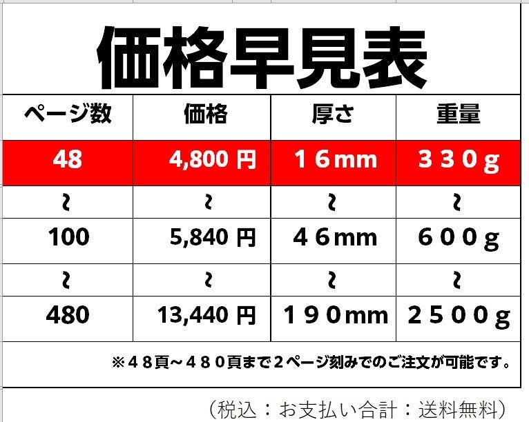 - 本体重量:48頁:330g/冊~480頁:2,500g/冊