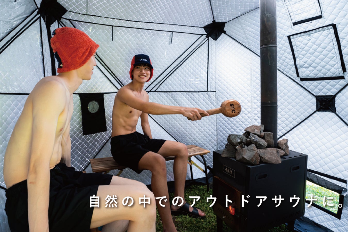 新潟発のアウトドアサウナブランド「ABiL(アビル)」。サウナハットやタオルなどサウナ関連グッズの製作・販売を手がけるかたわら、新潟県内を中心に様々な場所でテントサウナの体験イベントを開催してきた。そんなABiLが2022年8月19日に応援購入サービス「Makuake(マクアケ)」で先行販売を始めるのが、ABiLオリジナルのテントサウナ&ストーブ。テントサウナで過ごす人のことを思い、細やかな機能とデザインを施しました。
