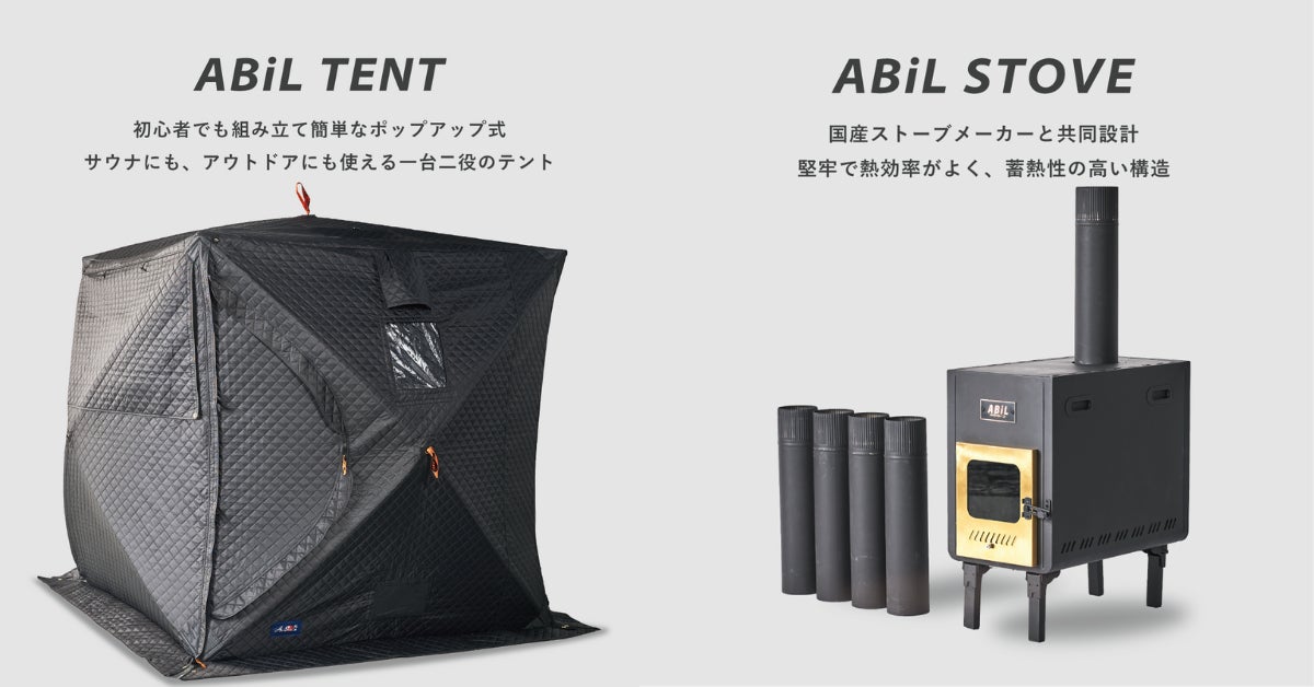 ABiLよりテントサウナ&ストーブが登場!応援購入サービス「Makuake」にて8月先行発売開始!