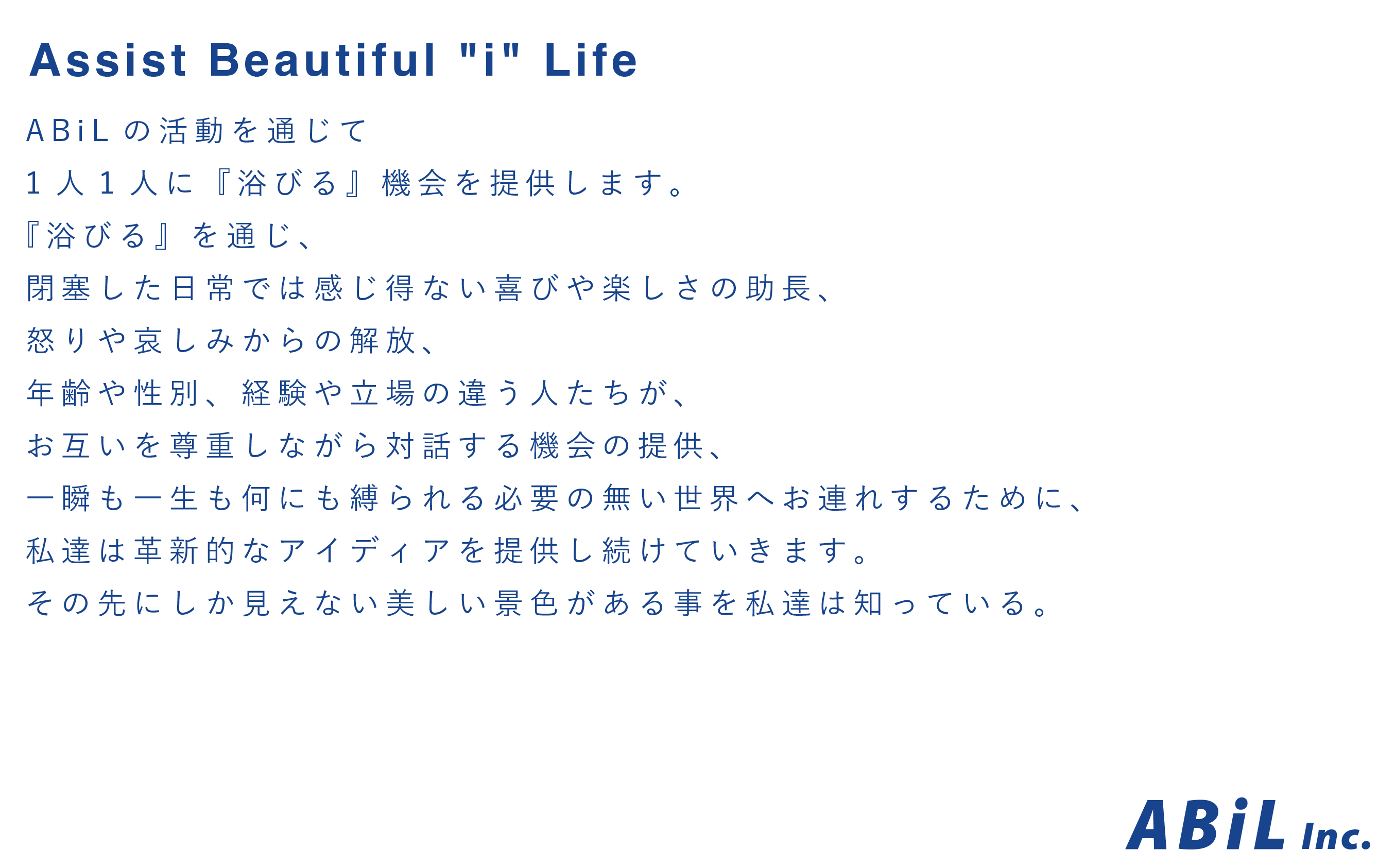 これからの世の中で、サウナがもたらしてくれるポジティブな影響を僕たちABiLからも発信し、皆さんに『浴びる』機会を、『Assist Beautiful "i" Life 』の世界観を拡げていきたいと思いこのプロジェクトに臨みます!