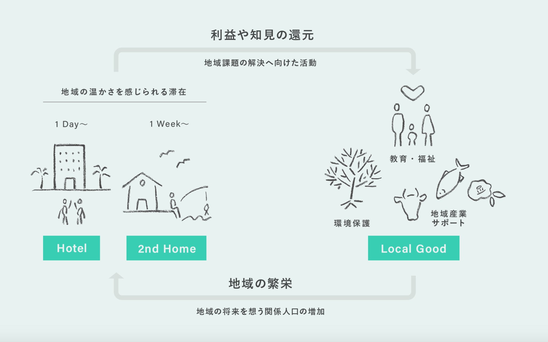 カラリトは、誰もが自分らしく、晴れやかな生き⽅を選択できる社会の実現を目指して設立されました。「Hotel」「2ndHome」「Local Good」の 3 つのキーワードを元にした事業を一体のシステムとしながら、「カラリト五島列島」を皮切りに、 九州全域に事業フィールドを拡げ、新しいライフスタイルを提案していきます。