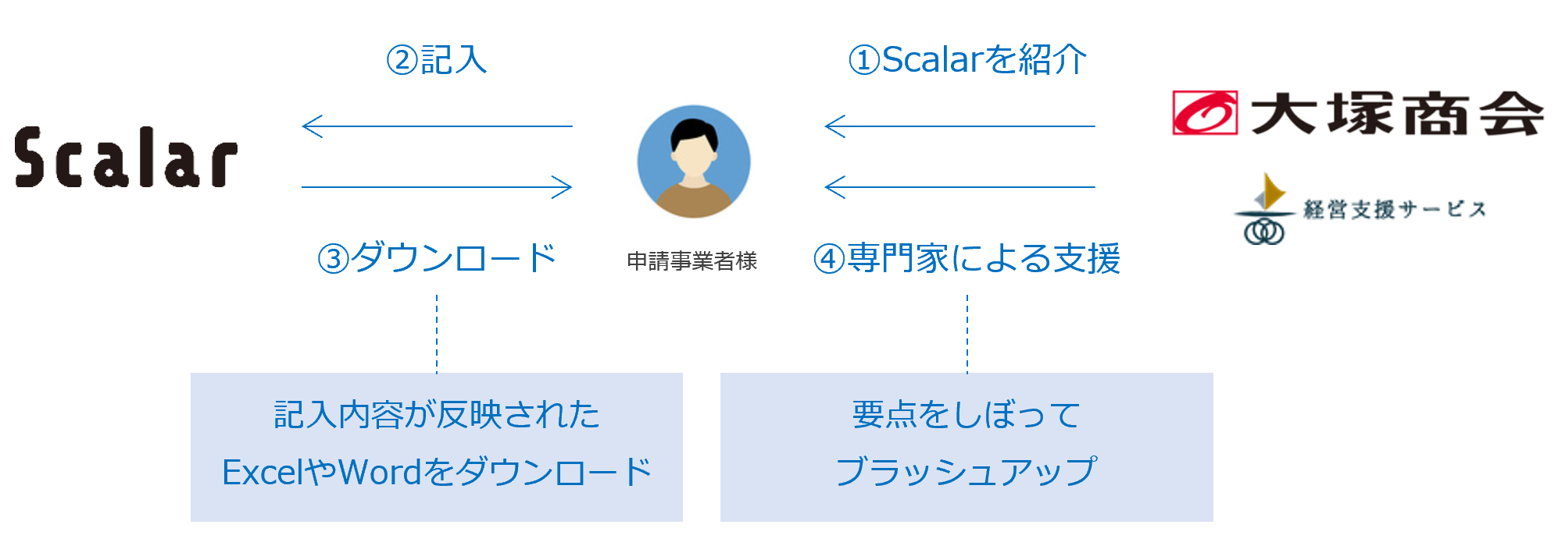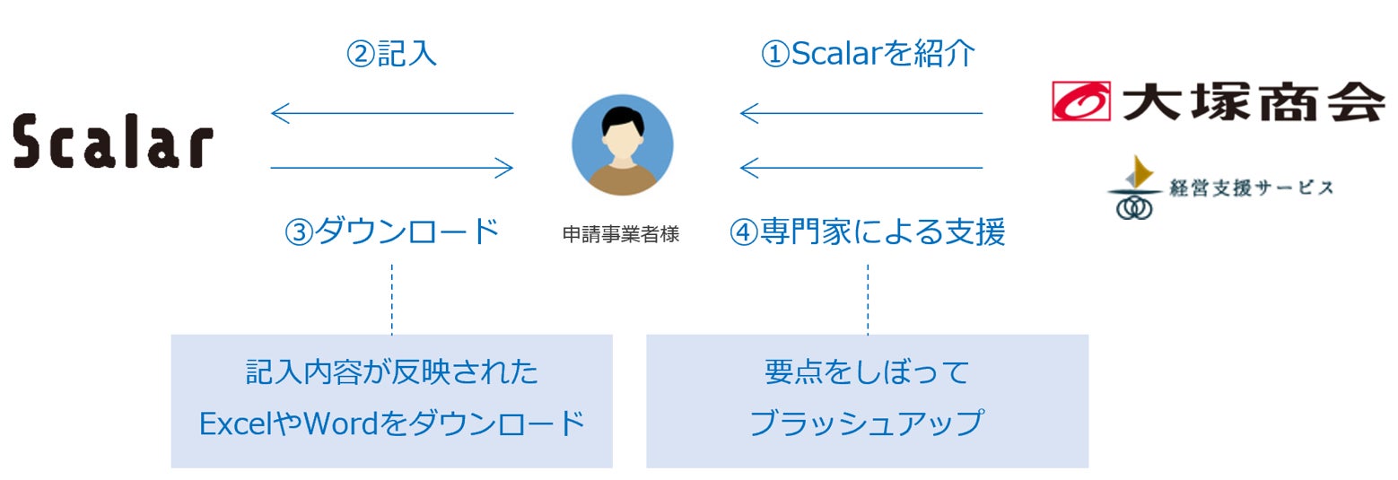 Scalar合同会社(本社:東京都渋谷区 代表取締役社長:吉田 光志 以下Scalar)は、株式会社大塚商会(本社:東京都千代田区 代表取締役社長:大塚 裕司 東証プライム:4768 以下大塚商会)が提供する「経営支援サービス」と協業し、全国の中小企業に対して効率的かつ実効性の高い事業計画の作成、ならびそれに基づいた補助金の申請サポートサービスを開始いたします。