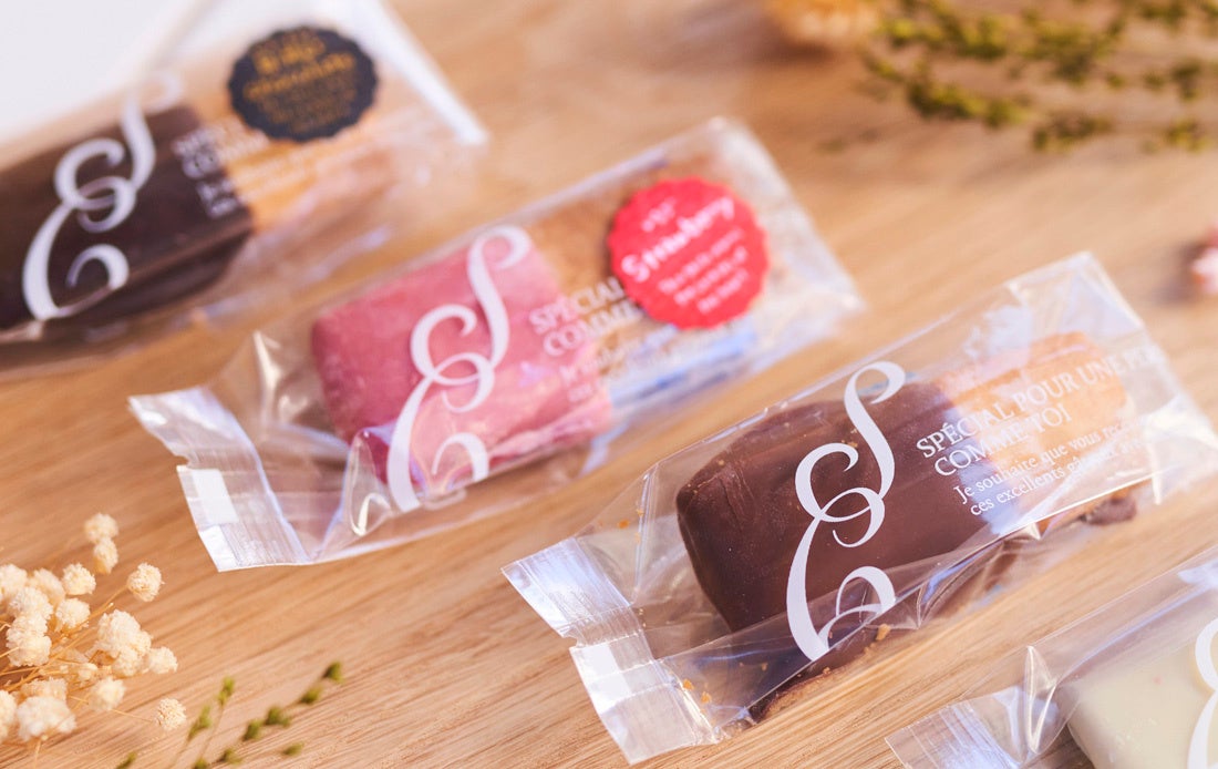 <特徴>サクサクサブレに半分チョコがかかっている可愛いお菓子