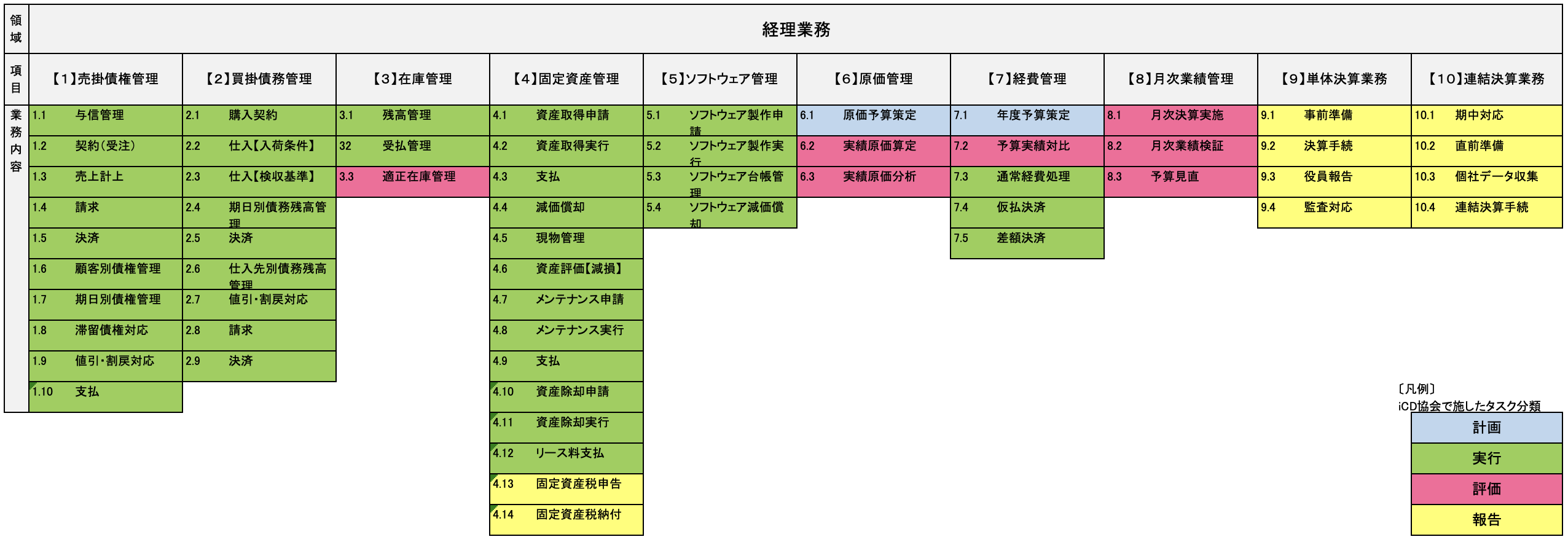 これらの状況を鑑み、iCD協会では、経済産業省が公開した「経理・財務サービス・スキルスタンダード」からタスクを抽出・体系化し、職務定義と人材育成に活用されている iCDに「経理・財務タスク」として追加しました。