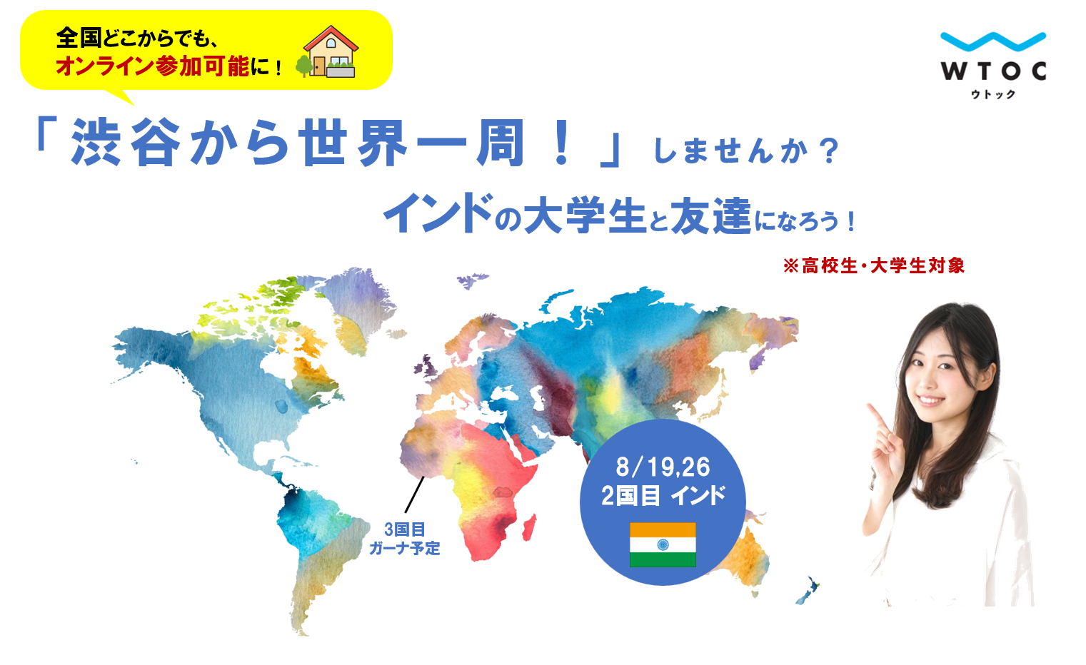 「渋谷から世界一周!」、8月はインドの大学生と友達になろう!~全国どこからでもオンライン参加可能!~