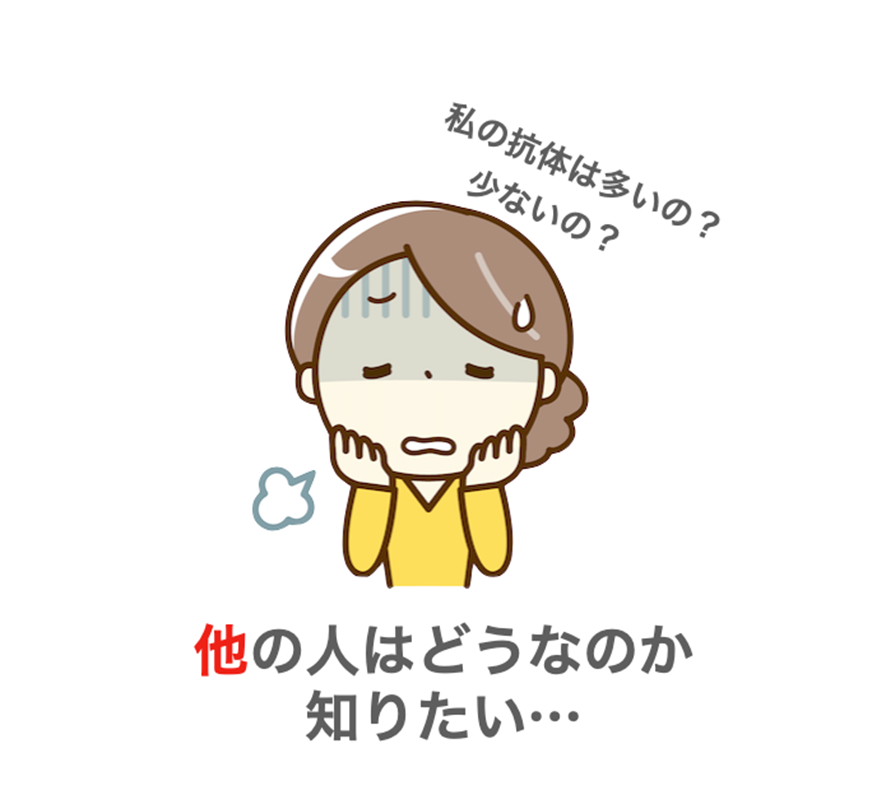ご自身や近親者の抗体が十分であると分かれば普段の生活で安心感を持つことができるでしょう。また、抗体量(抗体価)が少ないと知ることができれば、旅行やスポーツ観戦などの際に一層の注意を払うことができます。将来的には、ワクチン接種時期の判断材料に発展させていきたいと考えております。