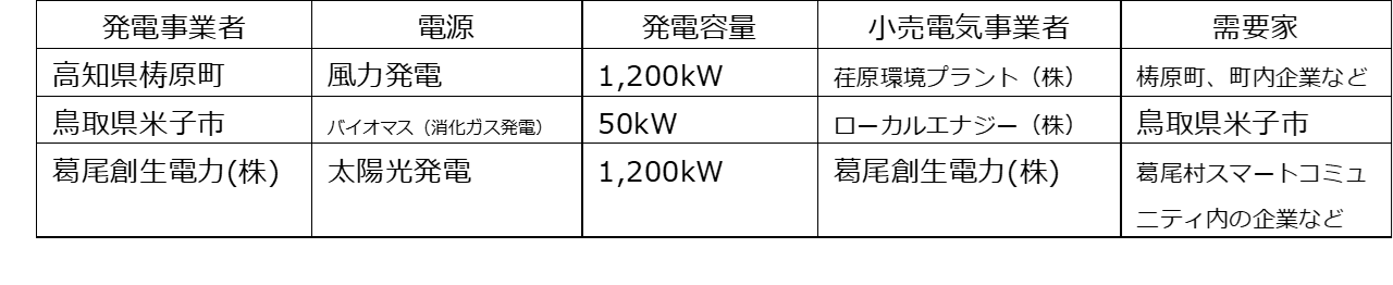 ※高知県梼原町と鳥取県米子市は環境省の「脱炭素先行地域」に選定。葛尾創生電力(福島県葛尾村が一部出資)の太陽光発電は東日本大震災からの復興事業の一部として実施。3プロジェクトとも、地域に裨益する再エネ事業として実施されている。