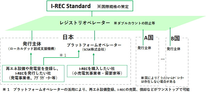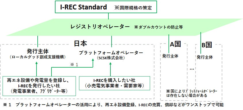 ・なお、発行主体である当機構から発行されたI-RECは、日本でのプラットフォームオペレーターであるSCSK(株)が構築予定のシステム上で売買等が可能となる予定です。