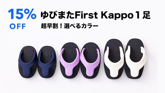 Makuakeで1200%を達成したヒット商品“かかとのない履物”『ゆびまたKappo』の第2弾が登場!子供も大人も履きやすくなった『ゆびまたFirstKappo』の応援購入プロジェクトがスタート。