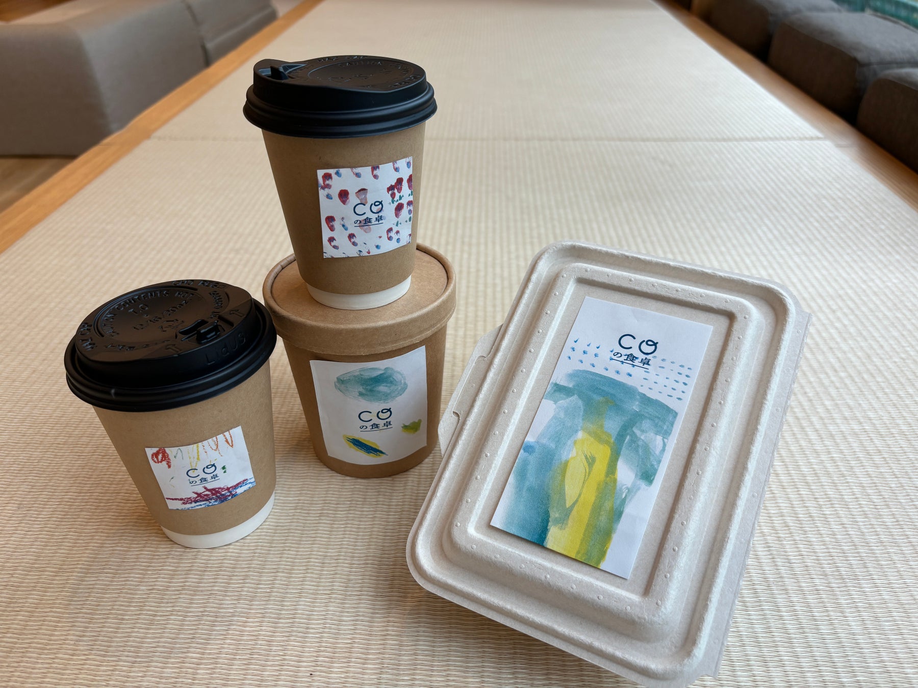coしぶや内のコミュニティカフェ「coの食卓」にて、おたのしみ企画を実施します。展覧会にも登場するこどもたち の作品が、ステッカー になってテイクアウト容器を彩ります。バリエーションは全部で10種ほど、数量限定です。