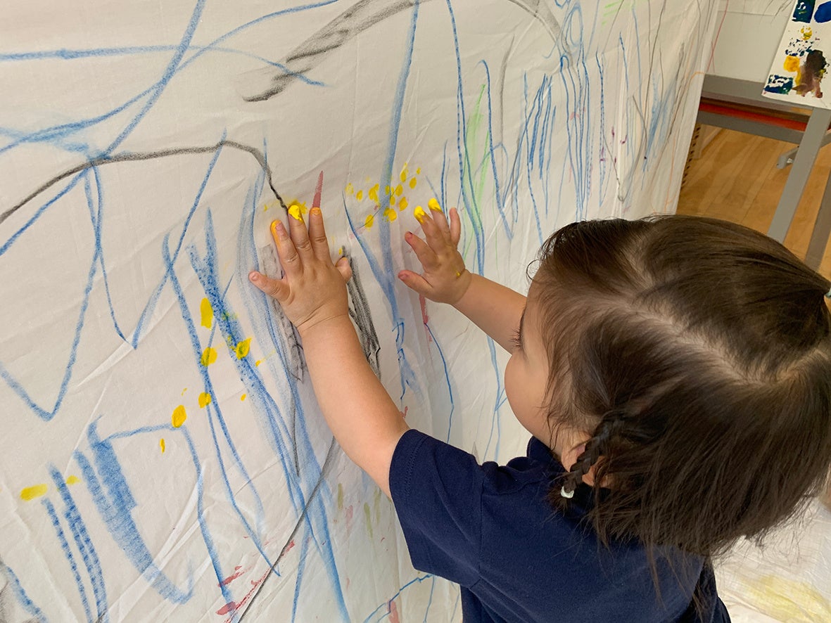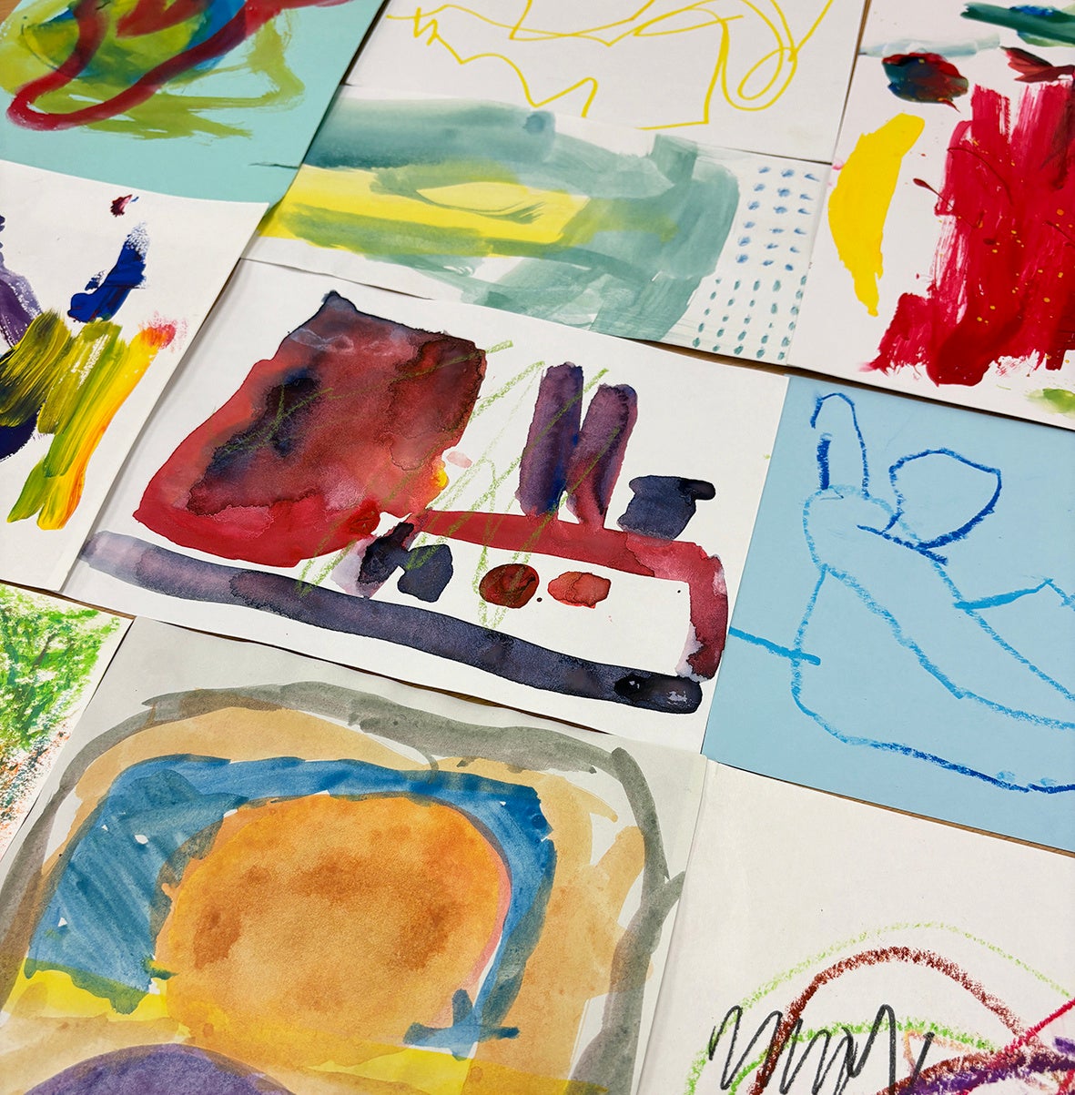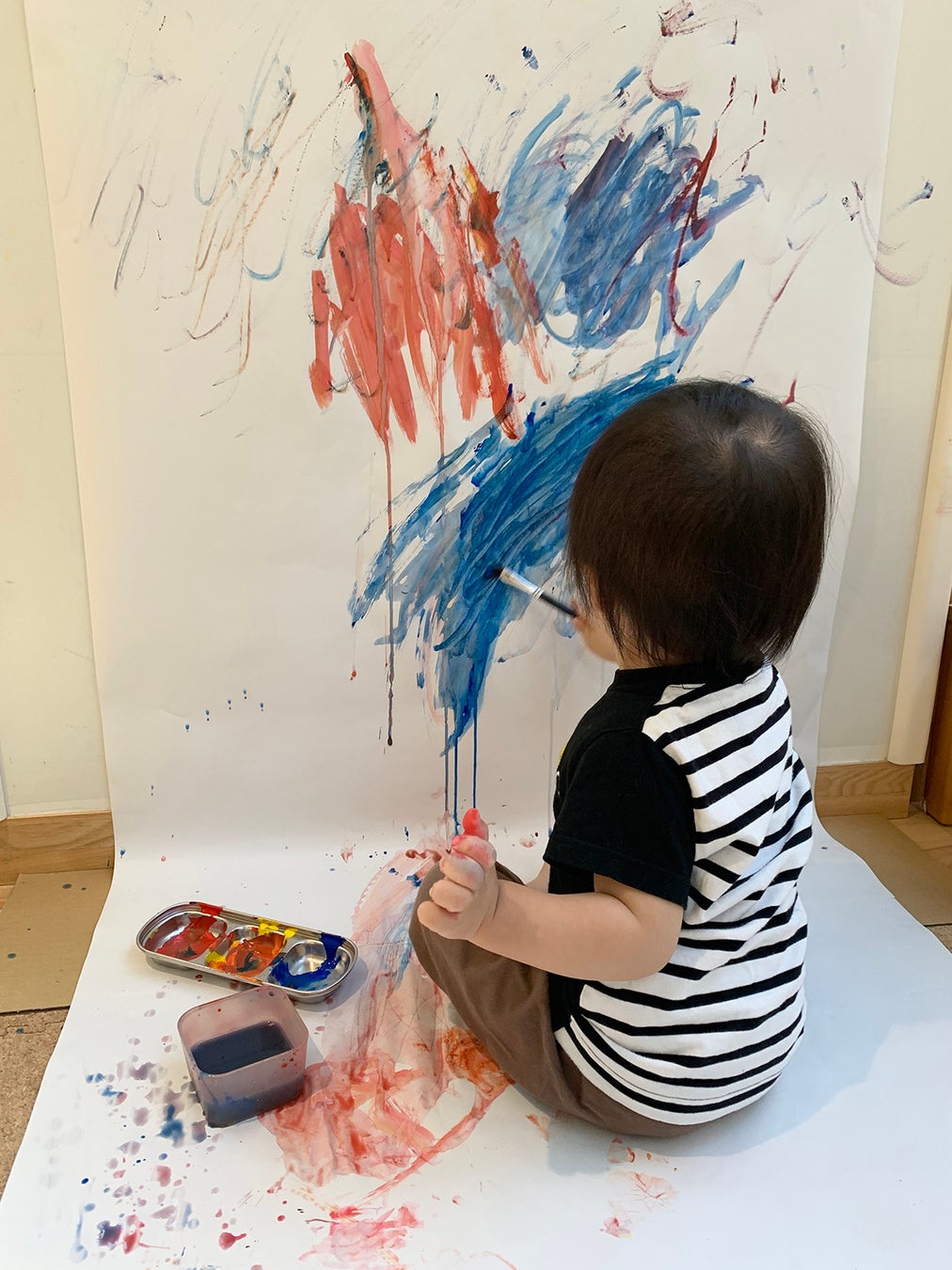 乳児期から幼児期に象徴的な「線画」の作品を集めました。生まれてはじめてのお絵かきを体験する子も多い、 coしぶやのアトリエならではの風景を展示にしています。