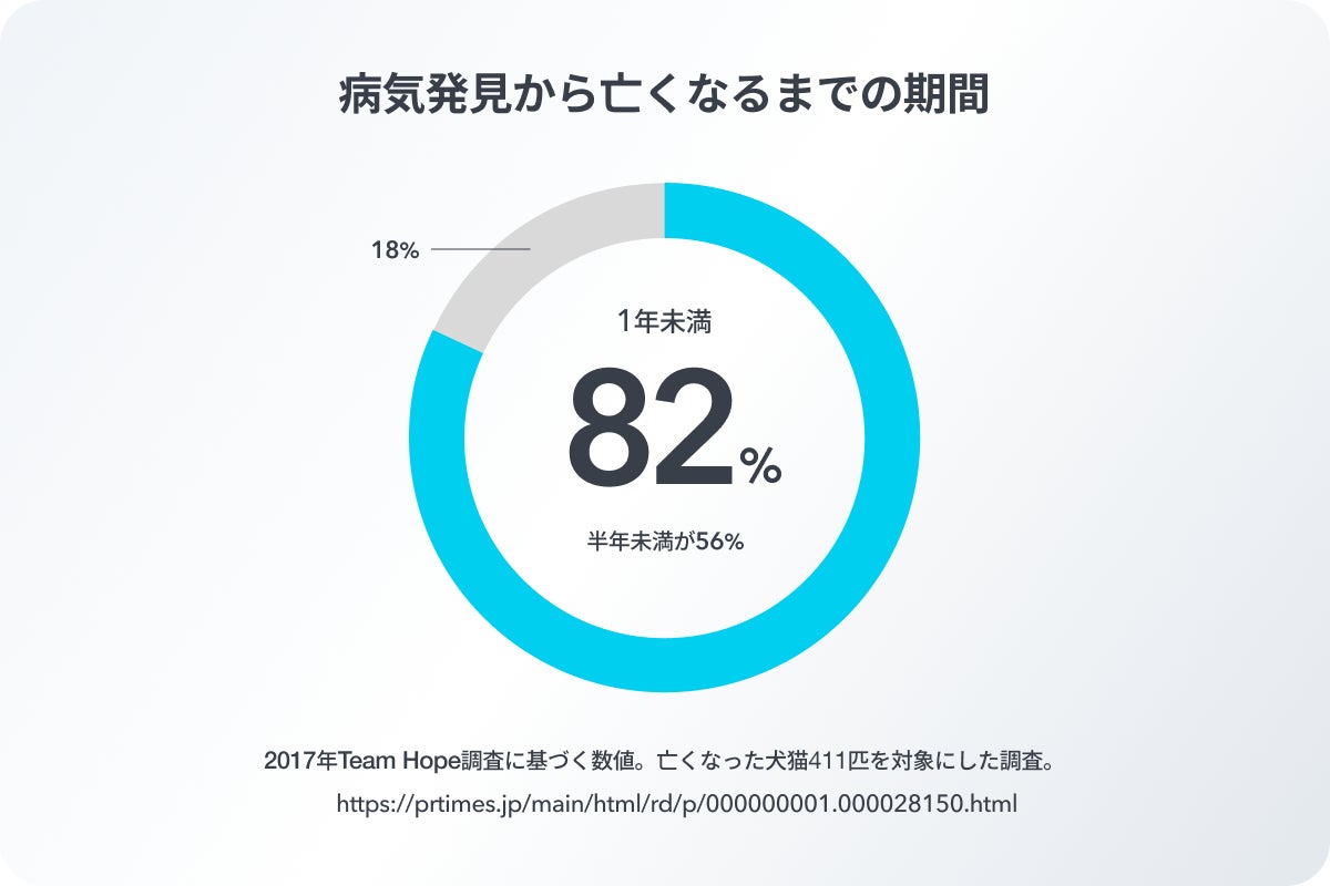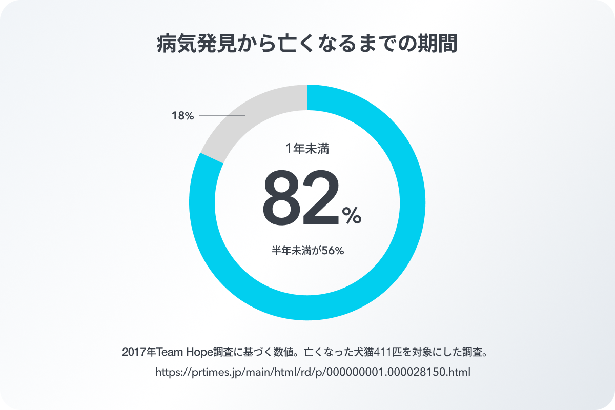 8割以上のペットが、兆候がみられてから 1年未満という短期間で命を落としているというデータがあります。