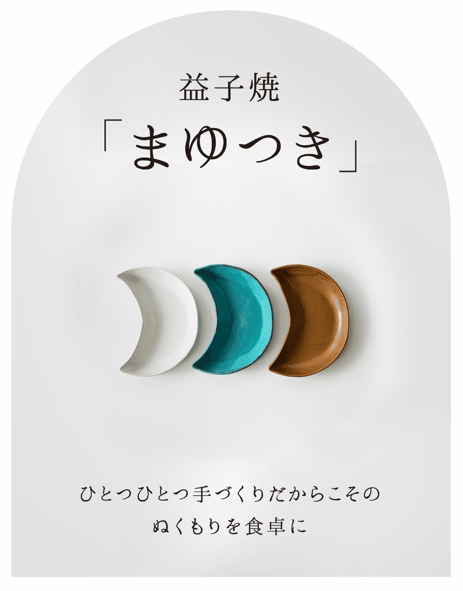 リニューアルを記念して、2022年10月13日より、益子焼の窯元「わかさま陶芸」とのコラボで三日月型のお皿「まゆつき」をMakuakeにて販売開始