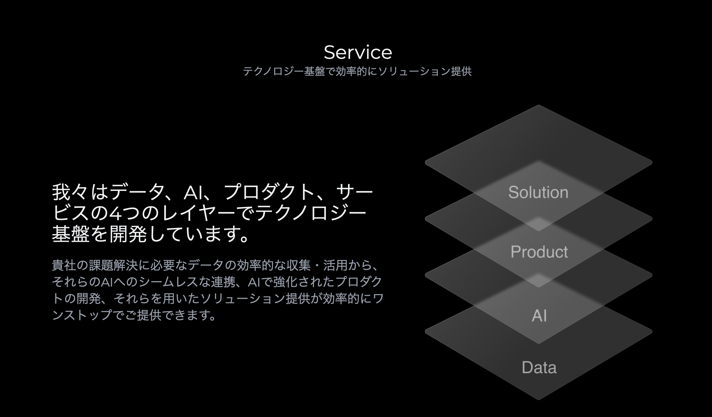 貴社のビジネスの躍進を支援するために、最先端の技術とAIの力を駆使して課題に直結するプロダクトの開発を行います。