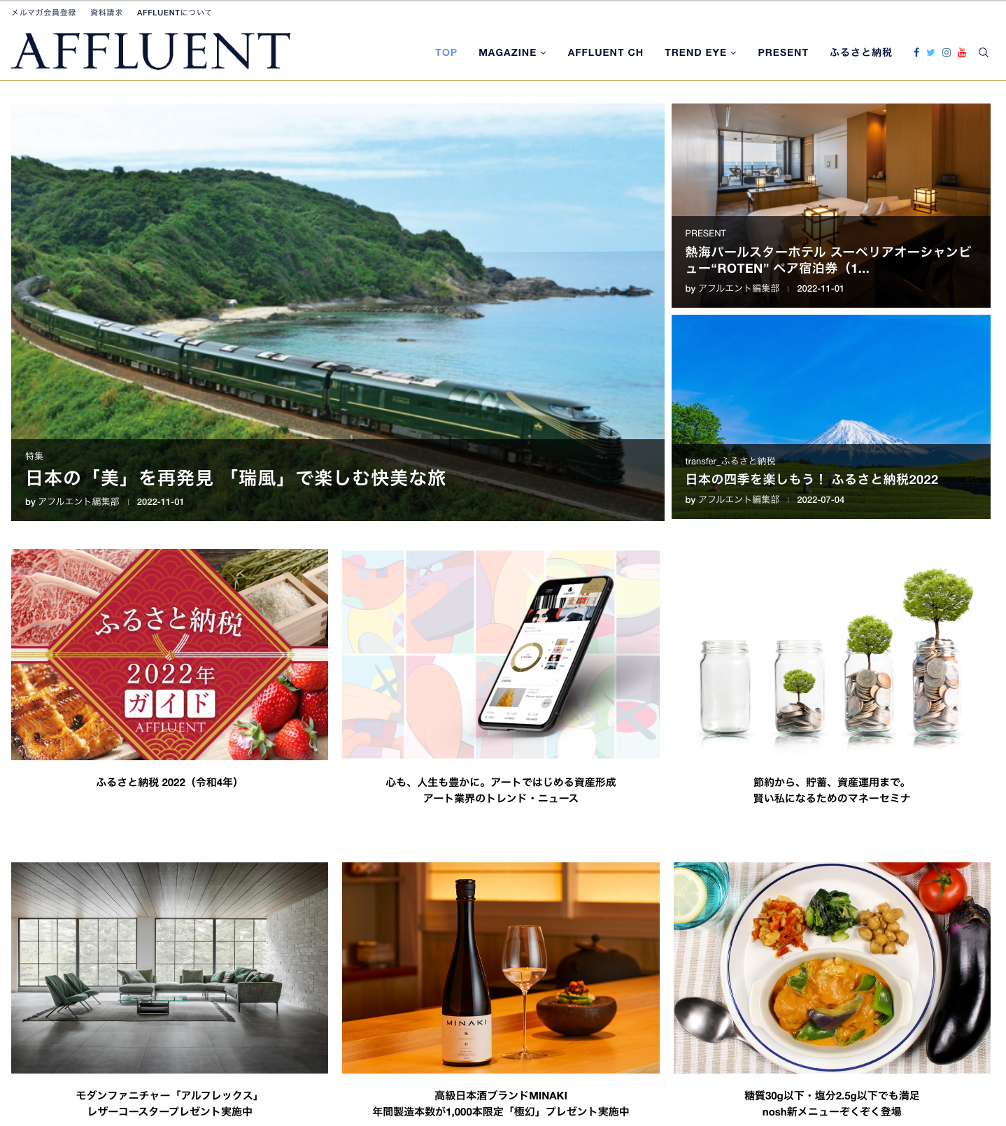 同時に、富裕層をターゲットに厳選した情報を発信するWEBメディア「AFFLUENT WEB」も展開。誌面連動記事のほか、WEB限定のオリジナルコンテンツを掲載しています。