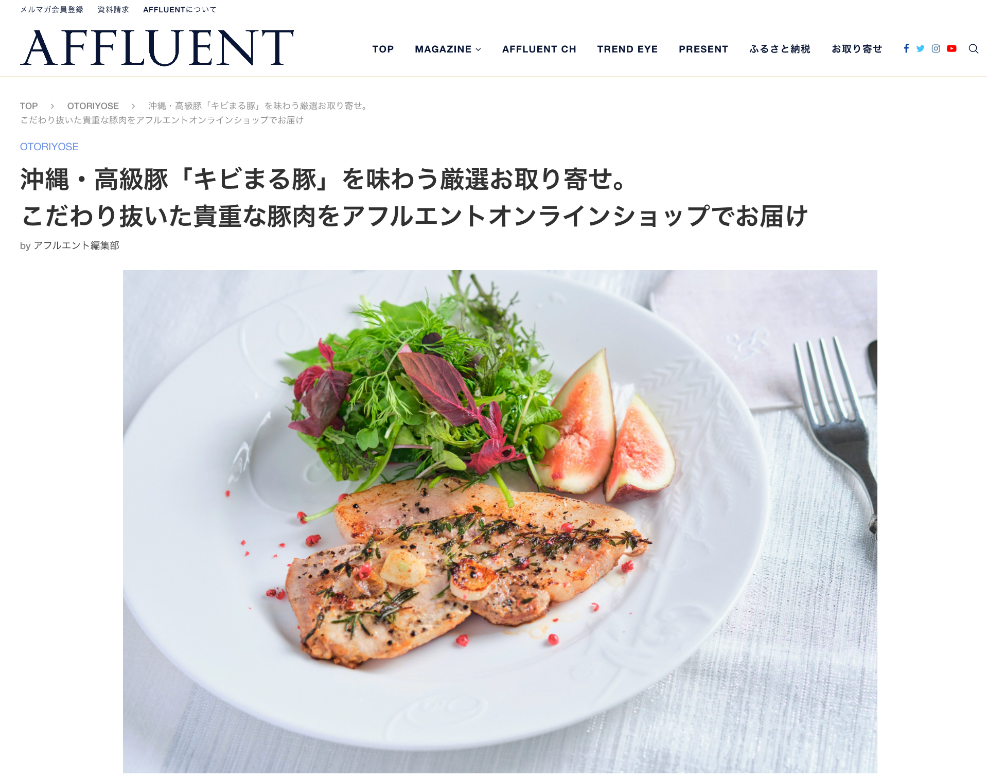 ▼AFFLUENT WEB 特集記事「沖縄・高級豚「キビまる豚」を味わう厳選お取り寄せ。こだわり抜いた貴重な豚肉をアフルエントオンラインショップでお届け」