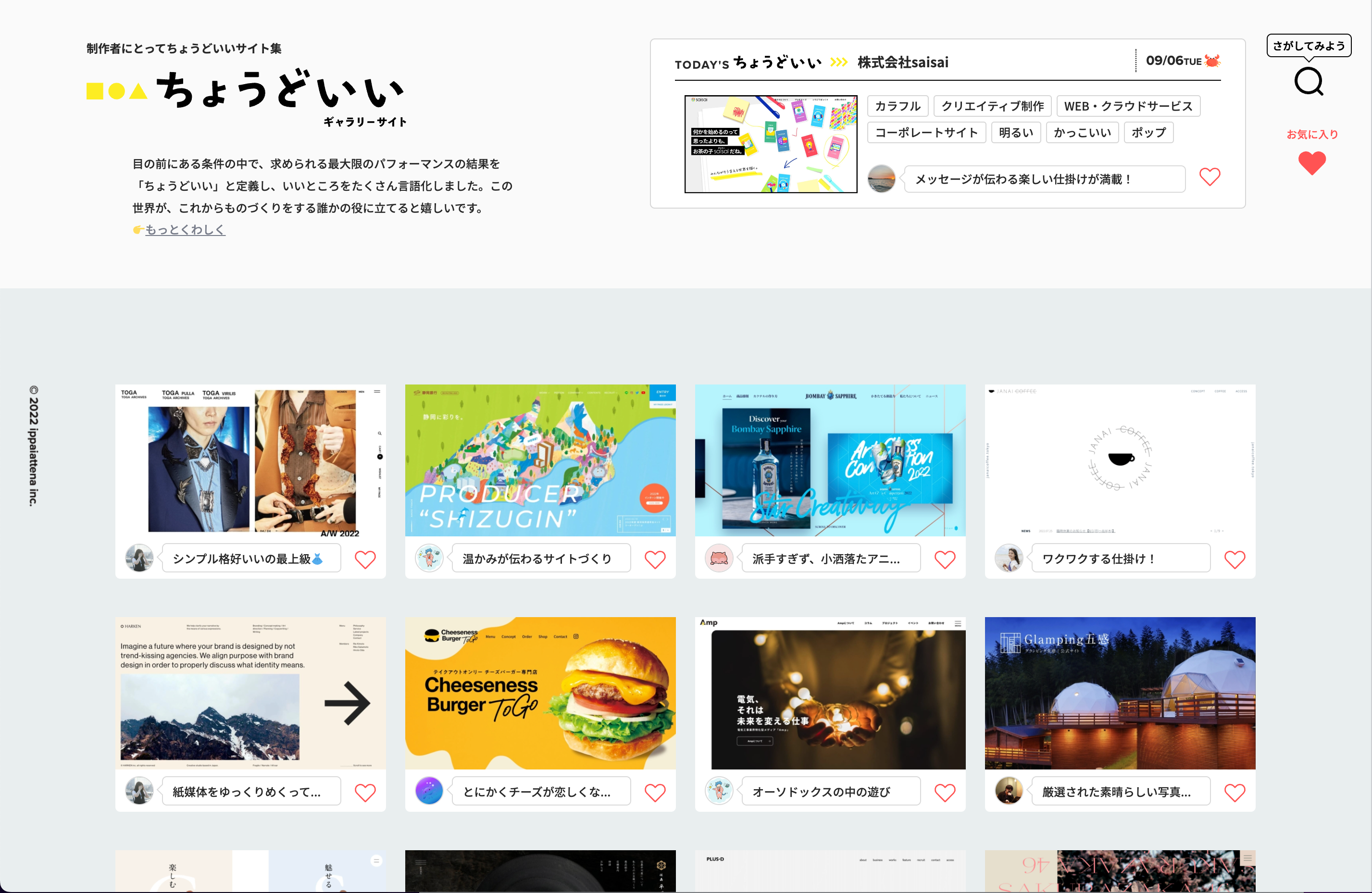 ちょうどいいWebデザインギャラリーは一目ではわからない工夫やさまざまな人の考え方やクリエイターの着眼点を「ちょうどいいポイント」ととしてフォーカスしたギャラリーサイトです。