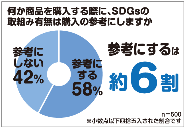今回のアンケートでも、商品購入時に企業の取り組みを参考にするか聞いたところ、およそ6割の人が「する」と答えています。