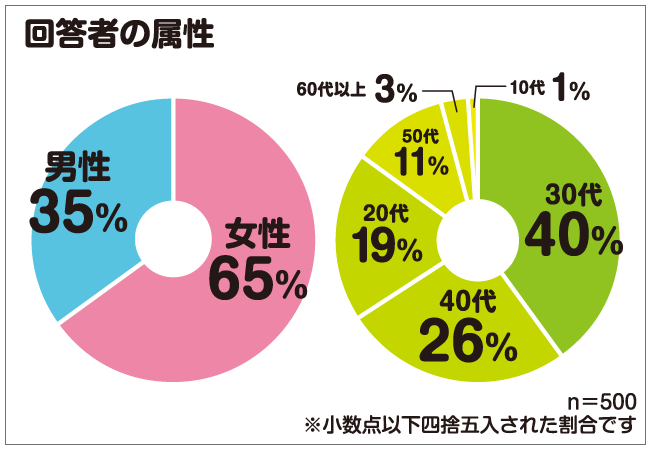 今回は男女500人に聞きました。性別、年代の内訳は以下の通りです。