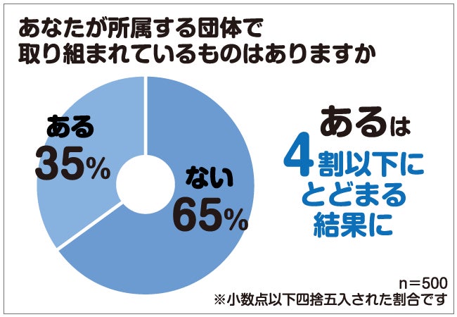 まず、所属する会社等で取り組まれているものがあるか聞いたところ、35%の人があると答えています。