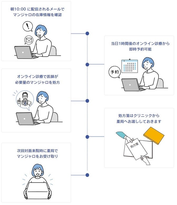 「安心通知会員」サービスは、マンジャロが必要な患者様がどこに住んでいても、必要とする薬剤が確実に供給されること目指します。このサービスを利用することで、患者様は以下のようなメリットを享受できます。