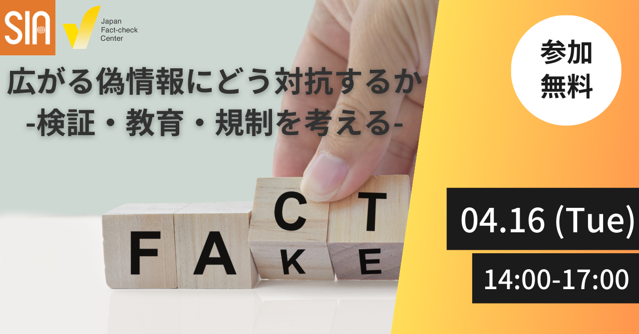 SIA、4月16日にシンポジウム「広がる偽情報にどう対抗するか -検証・教育・規制を考える-」を開催