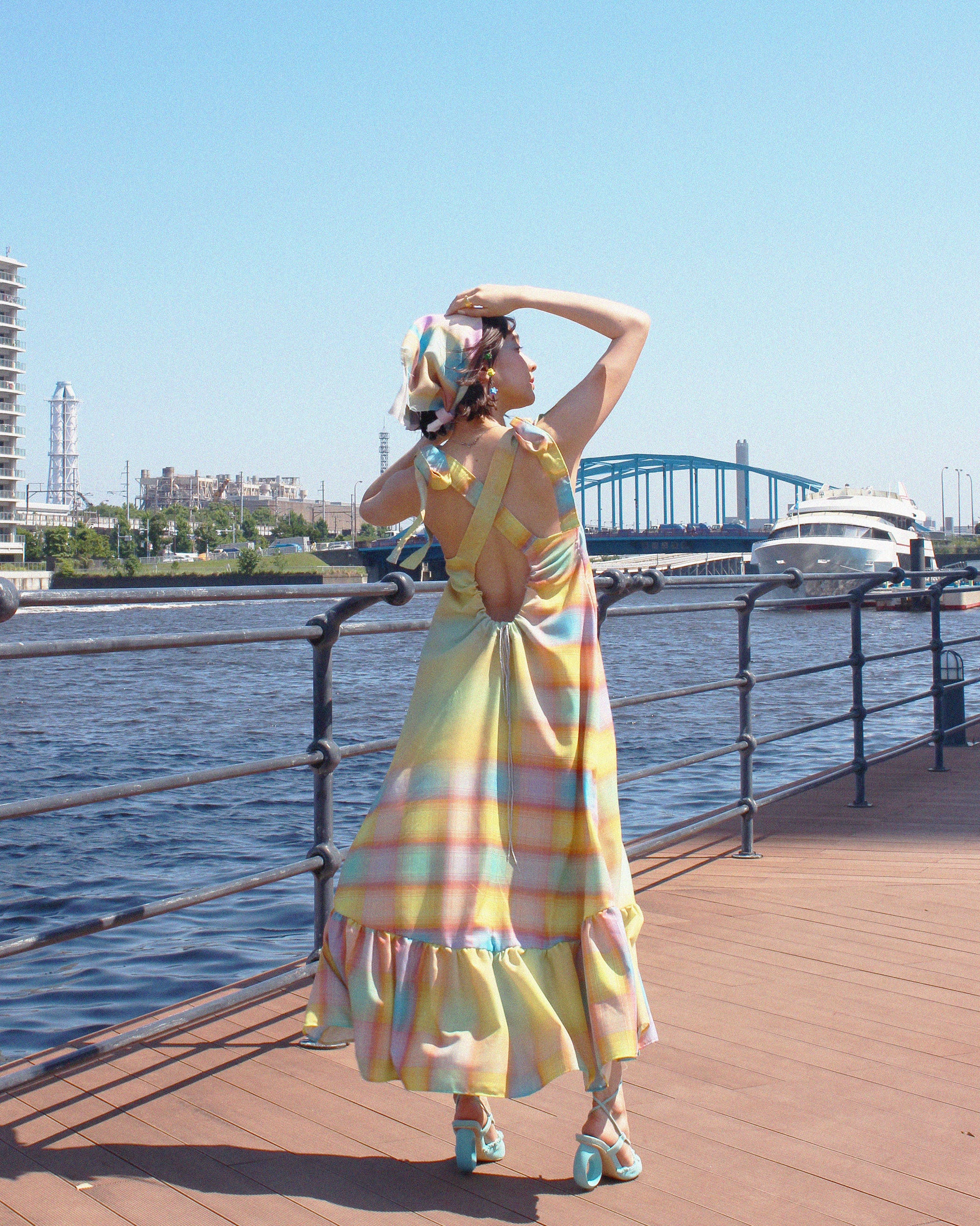 背中が大きく空いたデザインと柔らかな生地感で、夏にぴったりなワンピースとなっている。