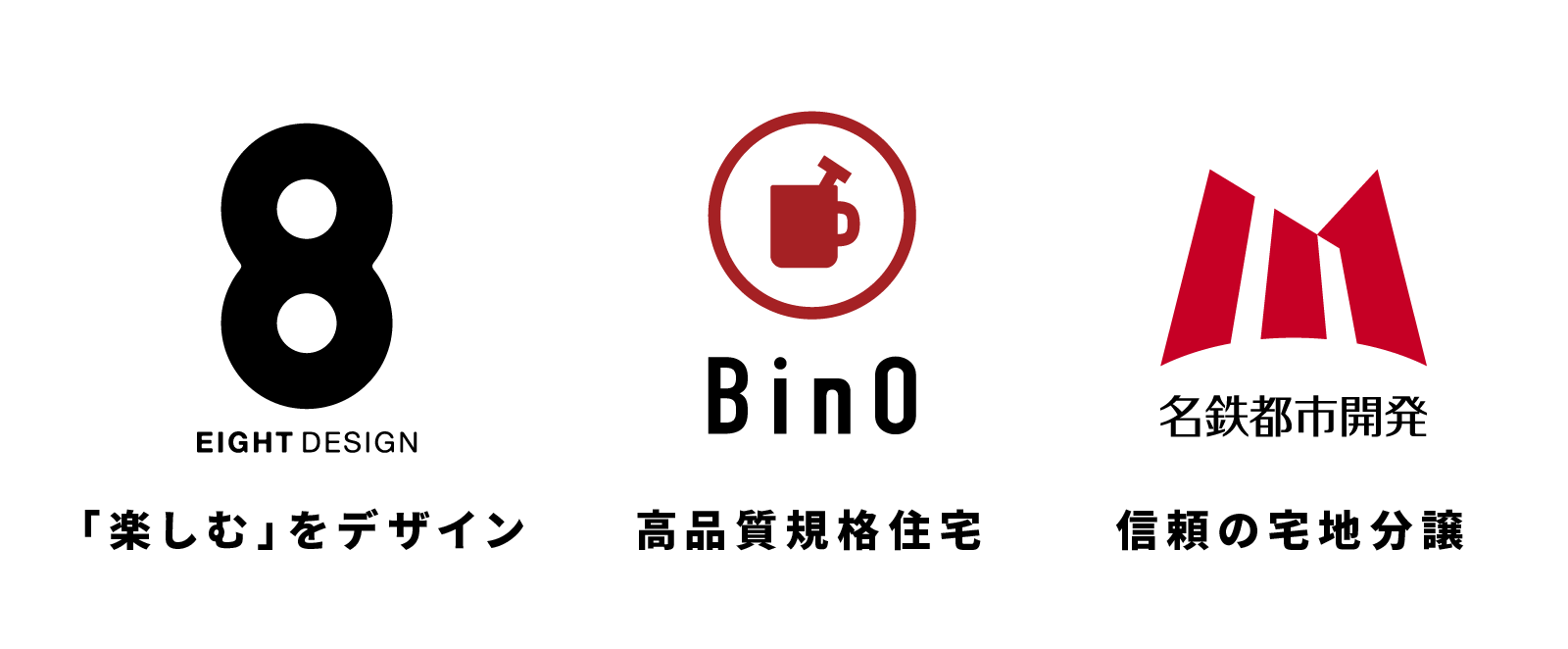名鉄都市開発が好立地の土地を提供し、BinO本部が高品質でコストパフォーマンス・タイムパフォーマンスに優れた規格住宅「BinO」を提供。