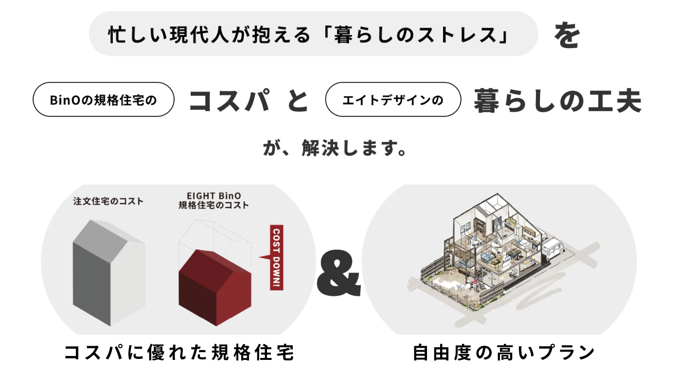インフレ市場において住宅取得費も上昇傾向にある中で、それでも自分らしく楽しい暮らしを実現したいというニーズにお応えするため新商品【EIGHT BinO】を開発しました。