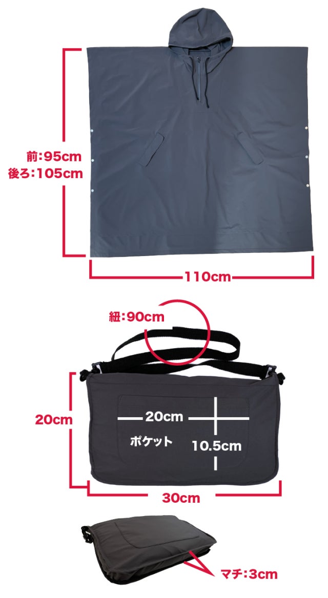 - 撥水生地・撥水ファスナーでレインポンチョにも