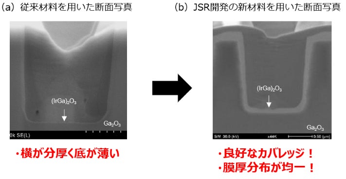 株式会社FLOSFIA(本社:京都市西京区、代表取締役社長:人羅俊実、以下FLOSFIA)とJSR株式会社(本社:東京都港区、代表取締役CEO:エリック ジョンソン、以下JSR)は、FLOSFIAがパワー半導体として展開する世界初のコランダム型酸化ガリウム【α-Ga2O3 】(以下「酸化ガリウム」)と組み合わせて使う新規P型半導体である、酸化イリジウムガリウム【α-(IrGa)2O3】(以下「酸化イリジウムガリウム」)の量産における課題を解消するため、新しいイリジウム系成膜材料を共同開発いたしました。今回開発した新材料を用いることで、酸化イリジウムガリウムの最大の特徴であるP型特性の発現はもちろん、産業応用に向け、量産における課題を解決する見通しがつきました。