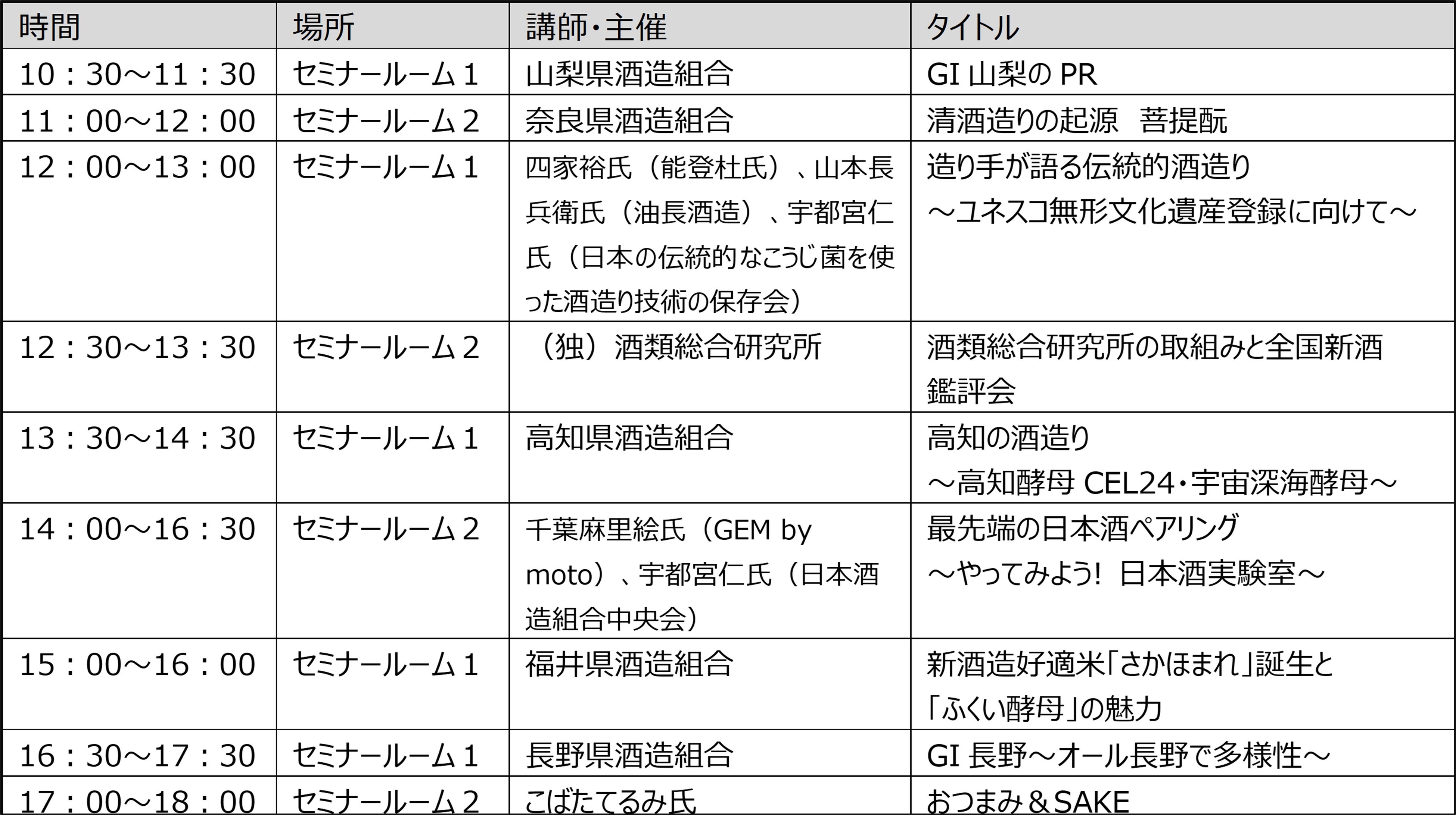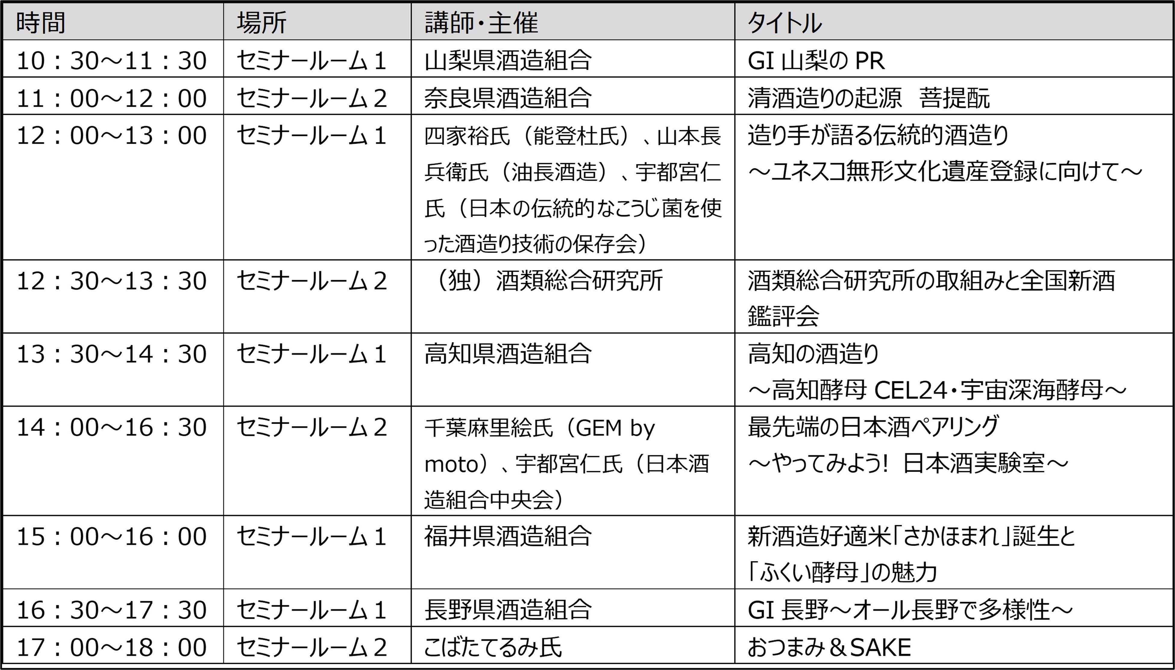 ◆日本酒セミナースケジュール 6月18日(土)のみ開催/チケット購入者のみ参加可能です(無料)