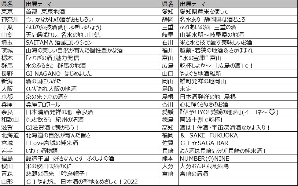 ◆全国日本酒フェア 各都道府県出展テーマ