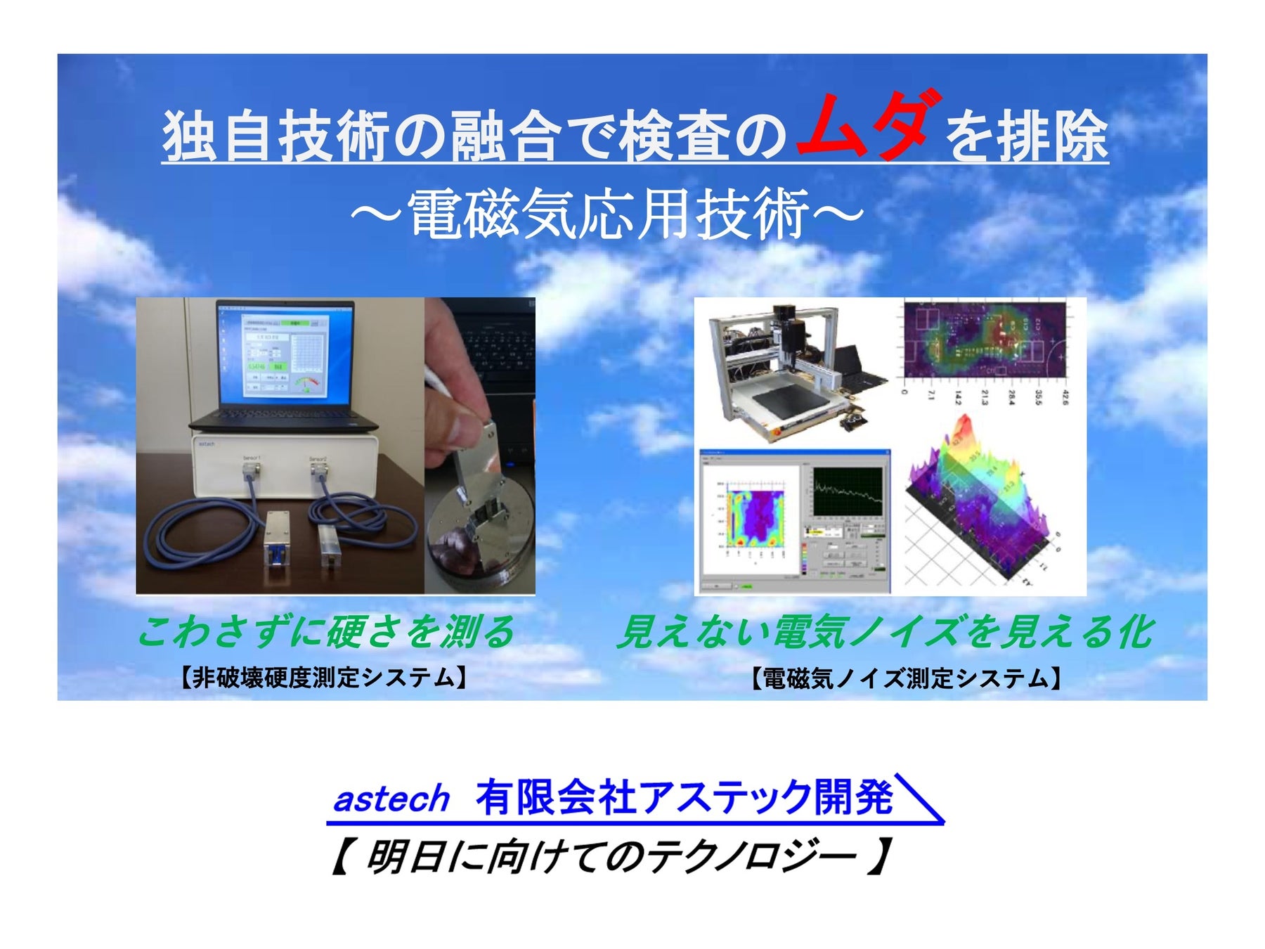従来の金属硬度破壊検査の無駄(検査サンプル作成の手間・時間・廃棄コスト)を省く、磁気特性を応用した非破壊硬度測定技術。インライン全数検査が可能。廃棄される金属材量の減少を図る。さらに新たな磁気応用技術ビジネスに展開していく。