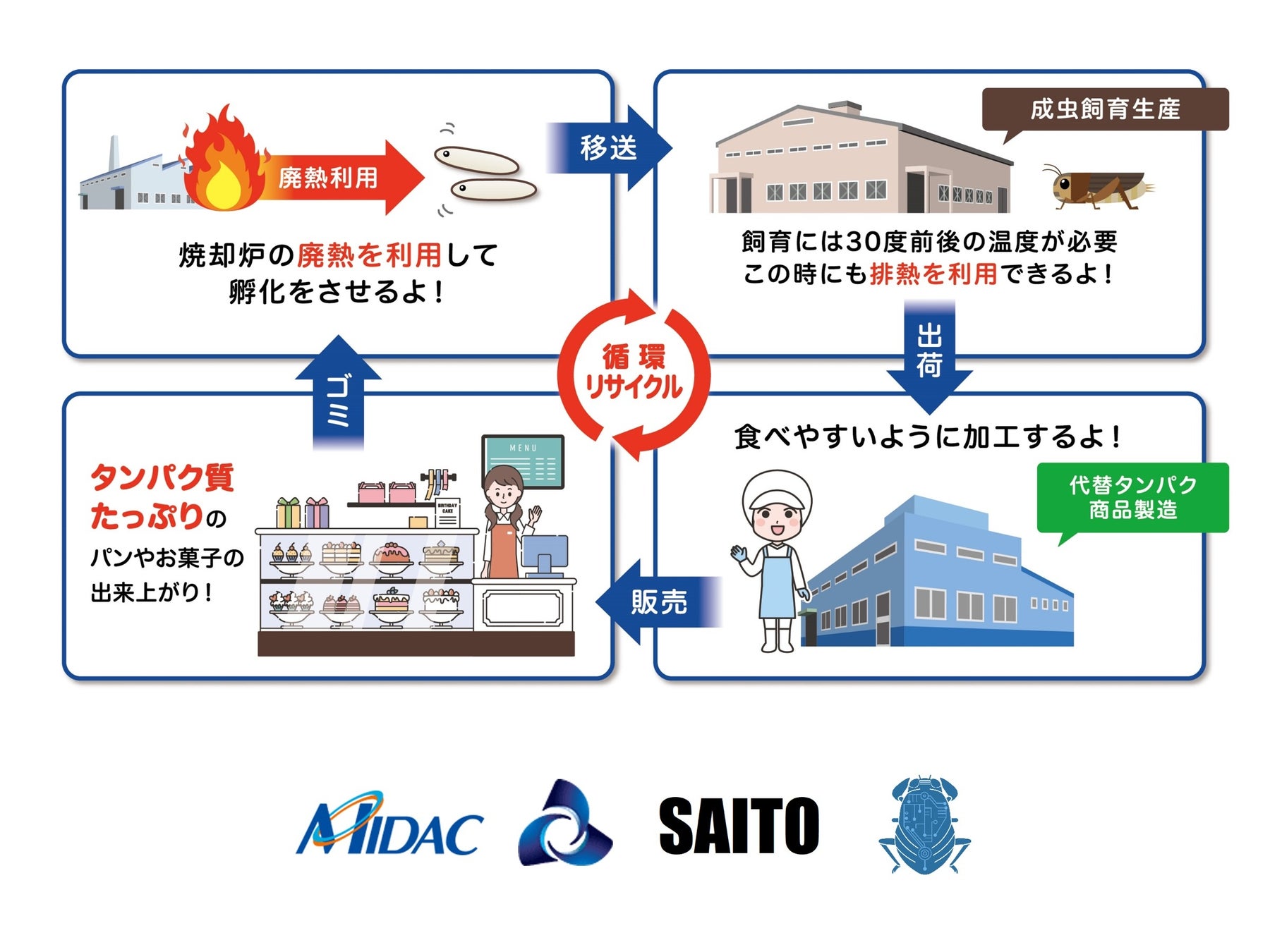 廃棄物焼却施設から出る廃熱の新たな輸送・利用システムを構築。廃熱を使った、持続可能な代替タンパク質であるコオロギの高付加価値化・高機能化・ブランド化に静岡県内異業種企業が連携して取り組む。