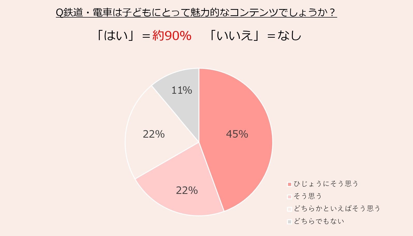 乳児、幼児に大人気の鉄道は、保育のプロである保育士たちからもまなびの素材として高く評価されています。「あすいく」提携先の保育園へのアンケートでは「鉄道・電車は子どもにとって魅力的なコンテンツだと思う」と90%が回答。その理由として、「性別に関係なく成長につながる」「文字や地理を覚えるのに有効」「生活に密着していて、外へ出ればすぐに本物を見ることができる」などの点が挙げられています。