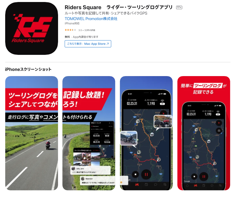 「Riders Square」はバイクが好きな人たちが、それぞれの「道」を記録できるログアプリです。