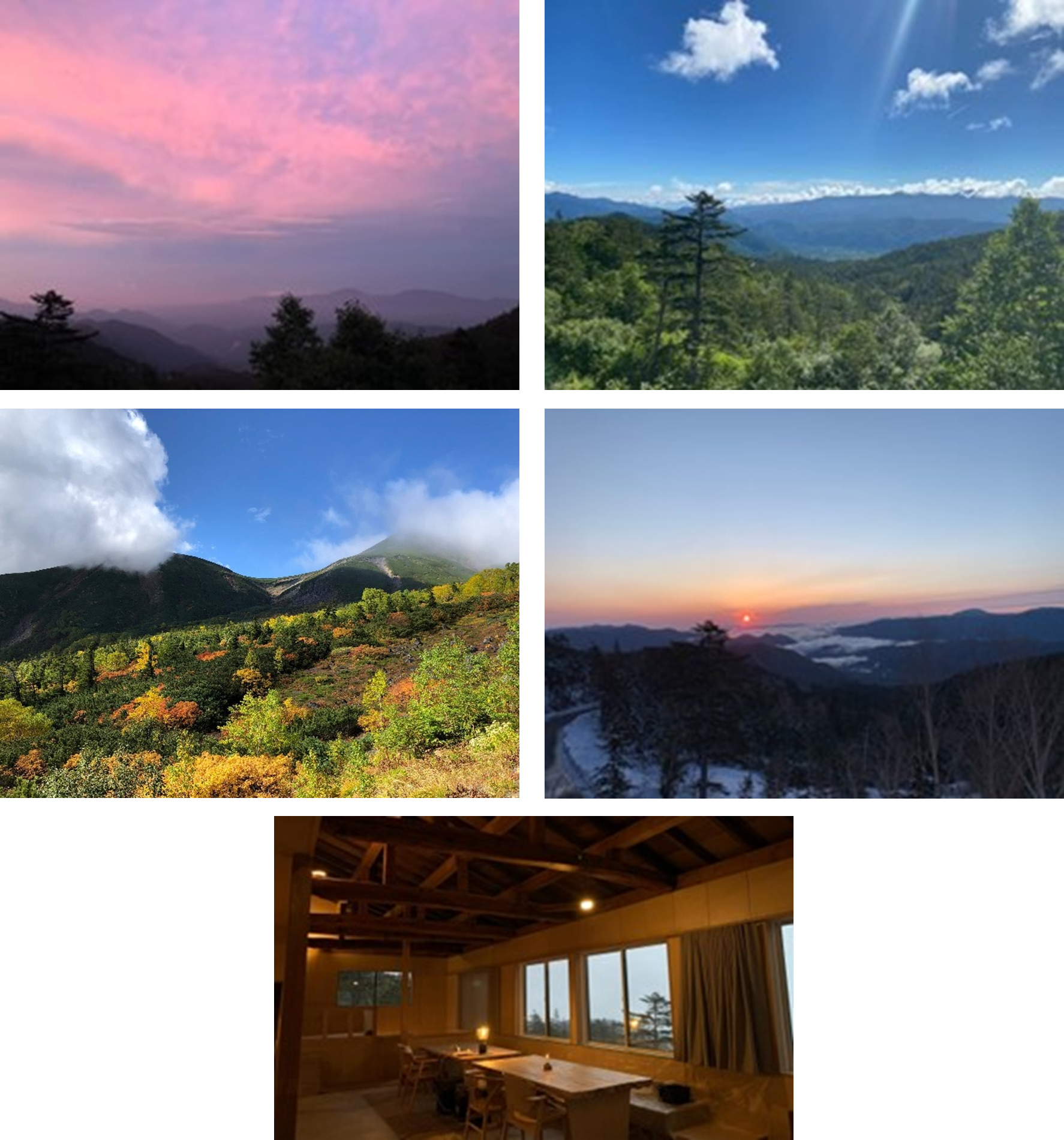 冷泉小屋の最大の魅力ともいえる眺望が楽しめるよう、改修時に窓を大きくしました。食卓に座ったまま、ご来光、朝焼け、麓を見下ろす日中のパノラマ、夕焼け、星空を楽しめます。特に秋の行楽シーズンは紅葉がみどころ。登山をする方もしない方も小屋からの木々の彩りをお楽しみください。