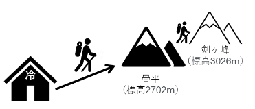 冷泉小屋から頂上にアタック。剣が峰までは約3時間で到達できます。