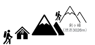 麓から頂上まで登山道があり、登山を楽しめます。三本滝から小屋までは約2時間。小屋から剣が峰までは約3時間。上り下りの休憩に是非お立ち寄りください。