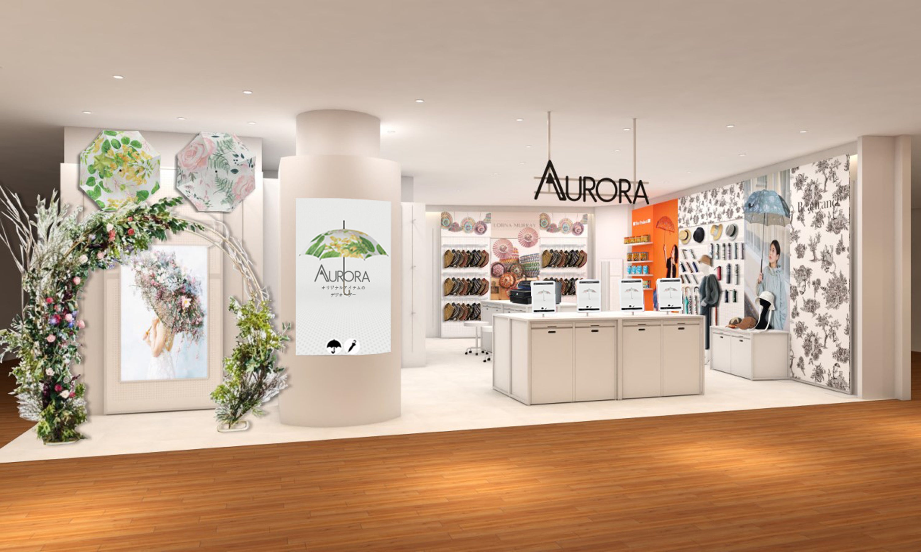 傘、スカーフ、帽子などのファッション雑貨を一点から作れる「オーロラ デジタルオーダー」システムでは、専門スタッフのサポートのもと、ご自身の画像やイラストを用いてオリジナル商品の製作が可能。著名なクリエイターとコラボレーションした限定品など、ここでしか体感できない店舗として展開し、世代を問わず実際に手に触れて体感いただけるストアです。