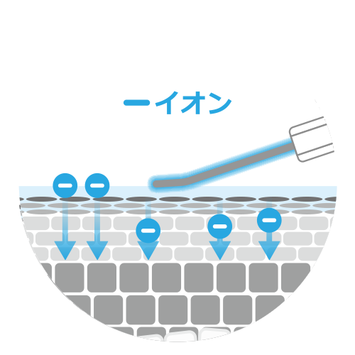 マイナスイオンの持つイオン誘導の働きでマイナス電荷の