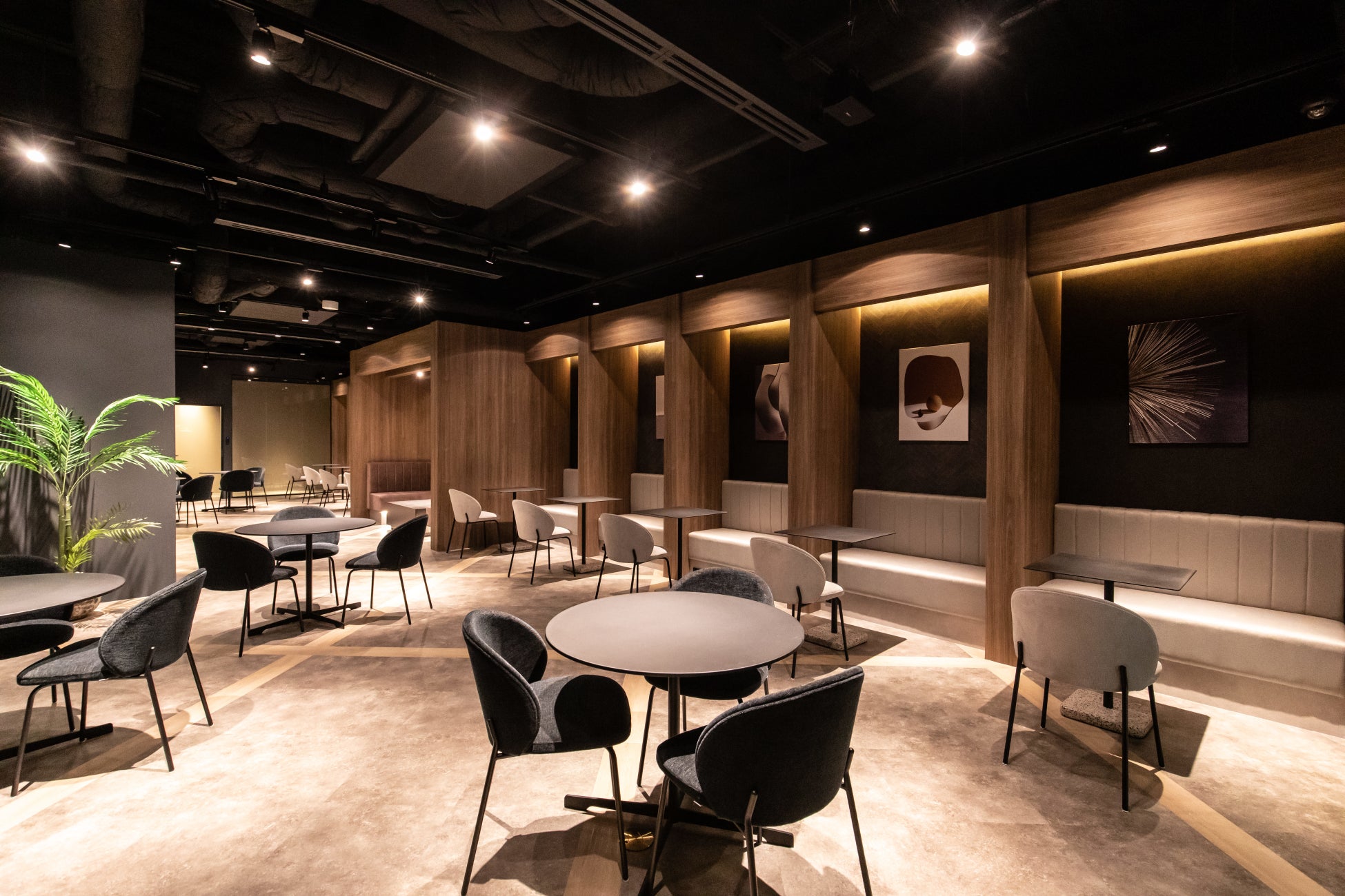 ビルのコンセプトは「先進性とデザイン性を兼ね備えた、次世代のオフィスビル」でございます。2022年2月竣工の新築オフィスビルでして、1Fのビジネスラウンジは、天井高約6メートルを生かした、スタイリッシュで解放感のある空間デザインを実現しております。格式高い洗練されたラウンジ空間なので、ご商談やお打合せ・採用活動にも自信をもってゲストを招待いただけます。