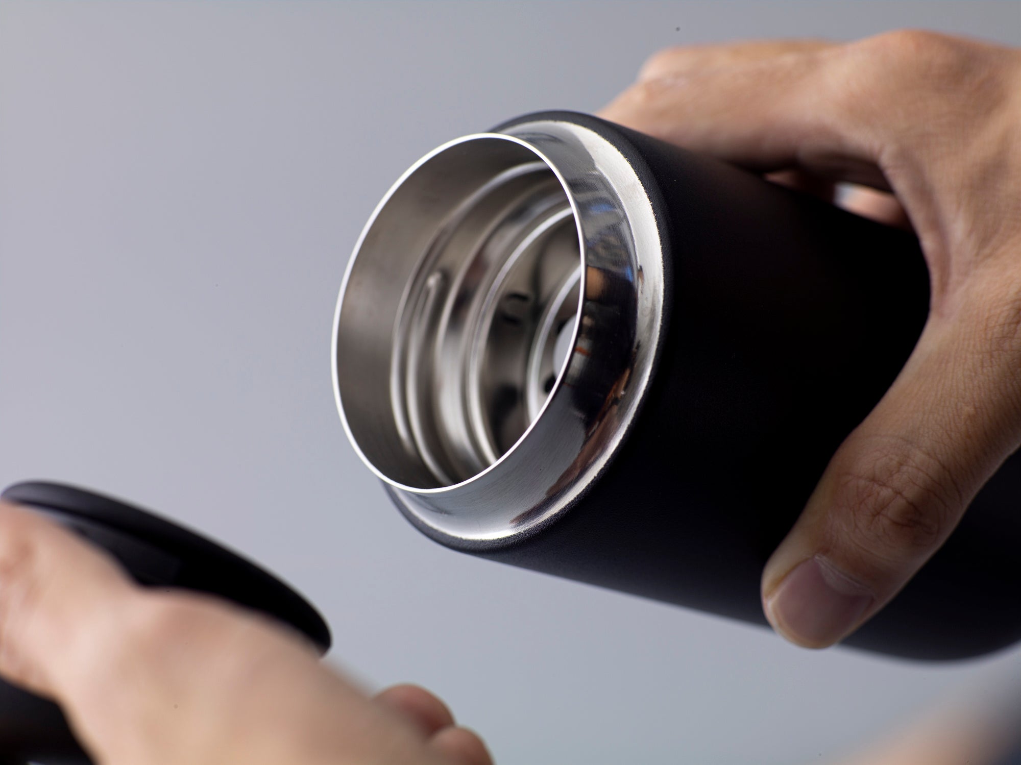 無駄のないスマートなデザインで持ち運びしやすく、二重の真空断熱構造で長時間の保温、保冷が可能です。