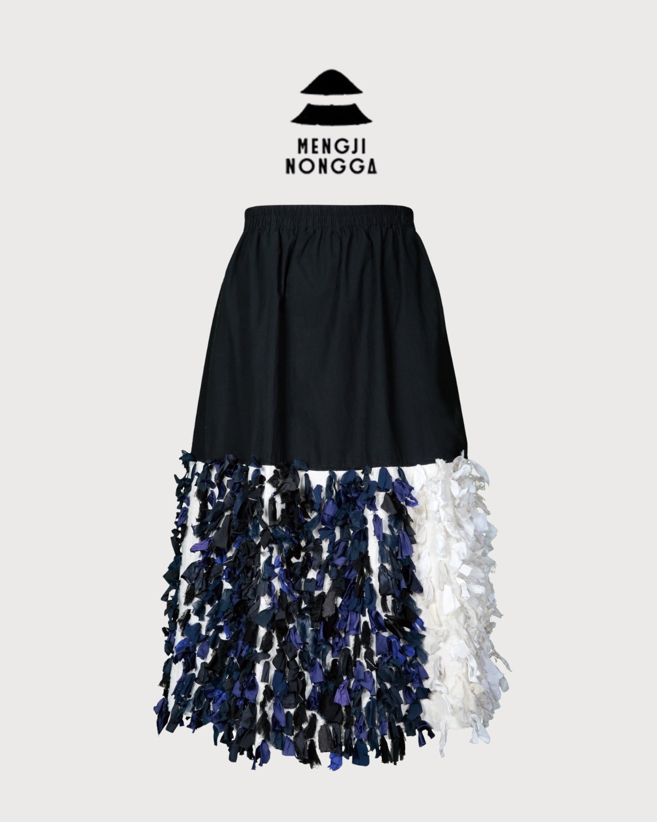 MENGJI NONGGA は、中国貴州省のミャオ族の村々の文化的遺産に根ざしたサステナブルファッション&ホームウェアブランドです。使い古された布の断片や生地の端切れを再解釈し、新たな触感ある形へと変容させます。このアプローチは持続可能性と素材のライフサイクル延長を重視しています。製品は貴州省ミャオ族の村に住む女性たちによって作られており、編み込み、縫い付け、織りといった伝統的な技法を用いて、唯一無二の作品を生み出します。