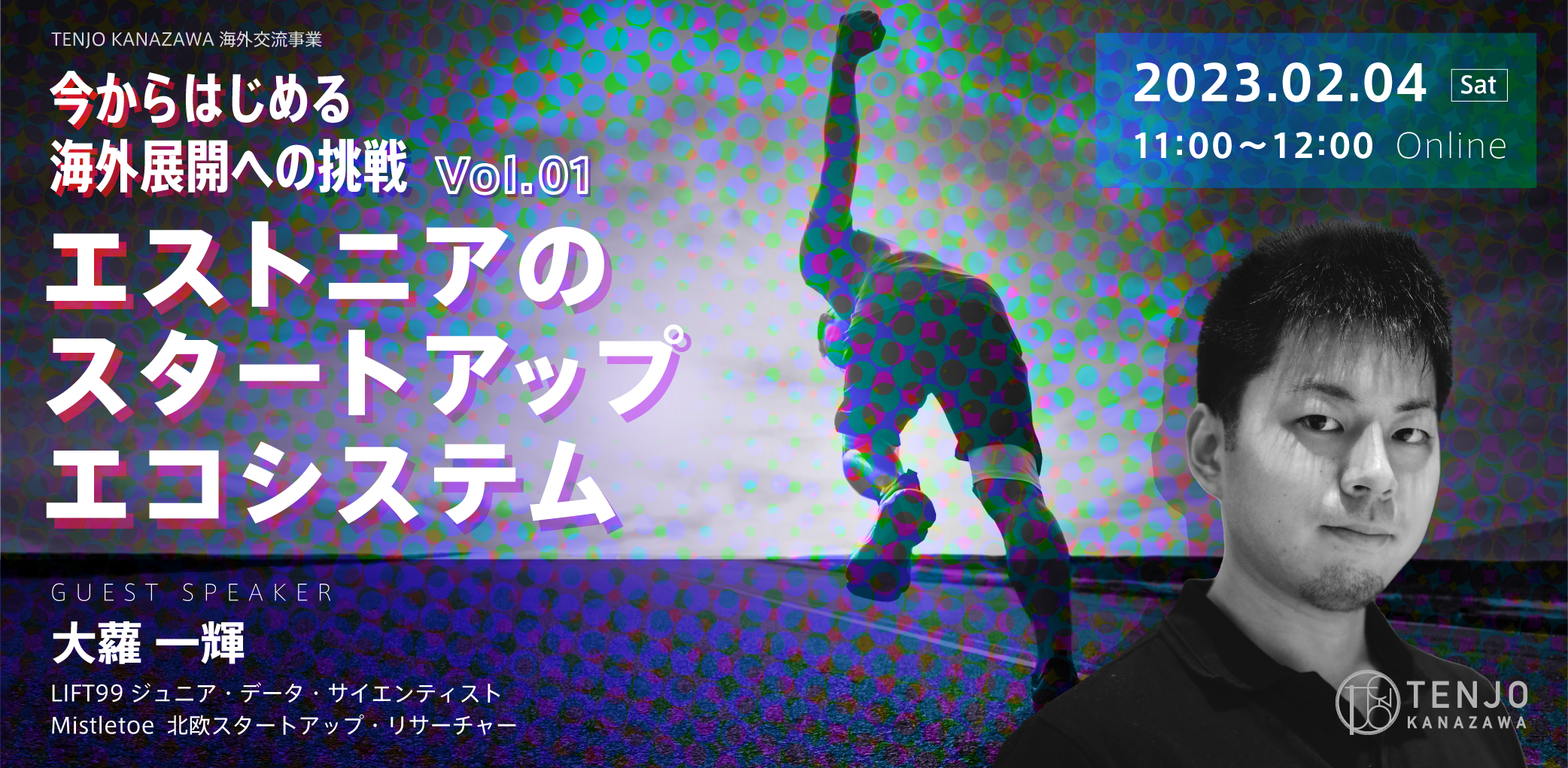 このような問題に向き合い、TENJO KANAZAWAは3回シリーズのオンラインセミナーを開催します。初めの二回は海外市場の傾向や現状の理解を深めるべく、エストニアとシリコンバレーからスタートアップの動向を肌で知るゲストをお招きし、メディアで目にする相違点の先にある生の声を伺います。