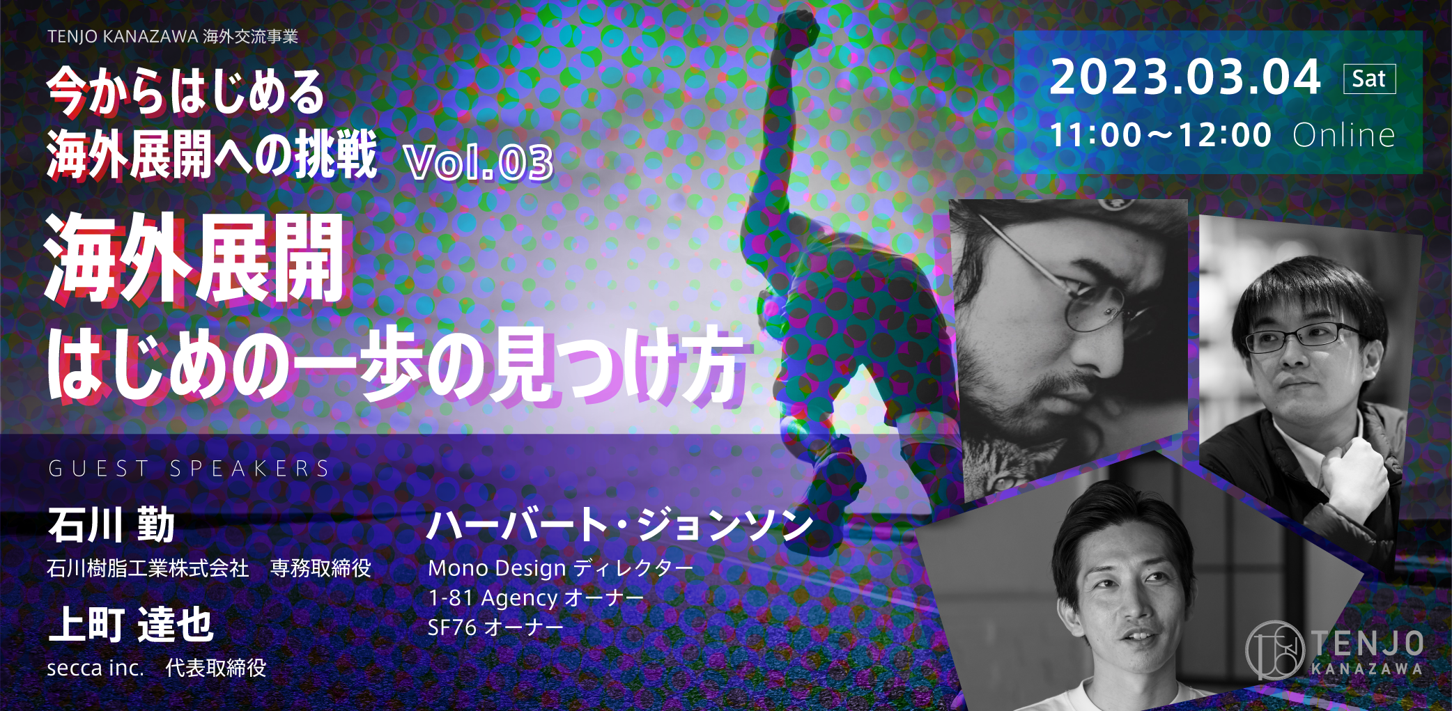 金沢未来のまち創造館 TENJO KANAZAWAが、3回シリーズの無料オンラインセミナー 『今からはじめる海外展開への挑戦』を開催!