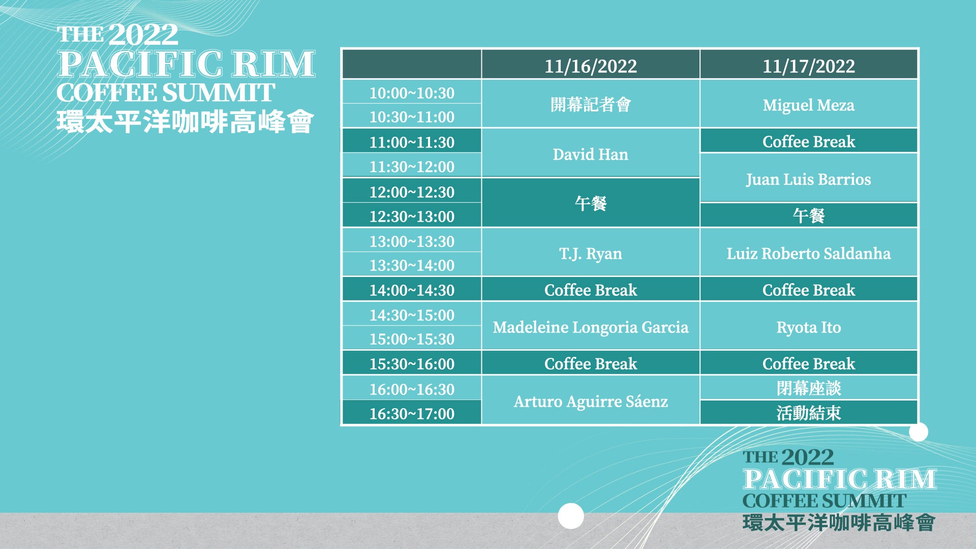 今回のサミットでは、気候変動が環太平洋地域の珈琲栽培に与える影響から、農家たちがどのようにテクノロジーや設備、最新技術を活用し、農園の管理と珈琲豆の精製を効率よく進行し、生産効率とクオリティーを高めるのかを討論します。また、スピーカー側は、より一層スペシャルティー珈琲と環境に優しい栽培方法などを分析し、土地と産業の持続可能な発展でウィンウィンを求めます。さらに、農園の経営と持続可能な開発の融合を討論し、世界で知名な珈琲農園の経験を基に、環太平洋の珈琲生産地に多くの可能性をもたらします。