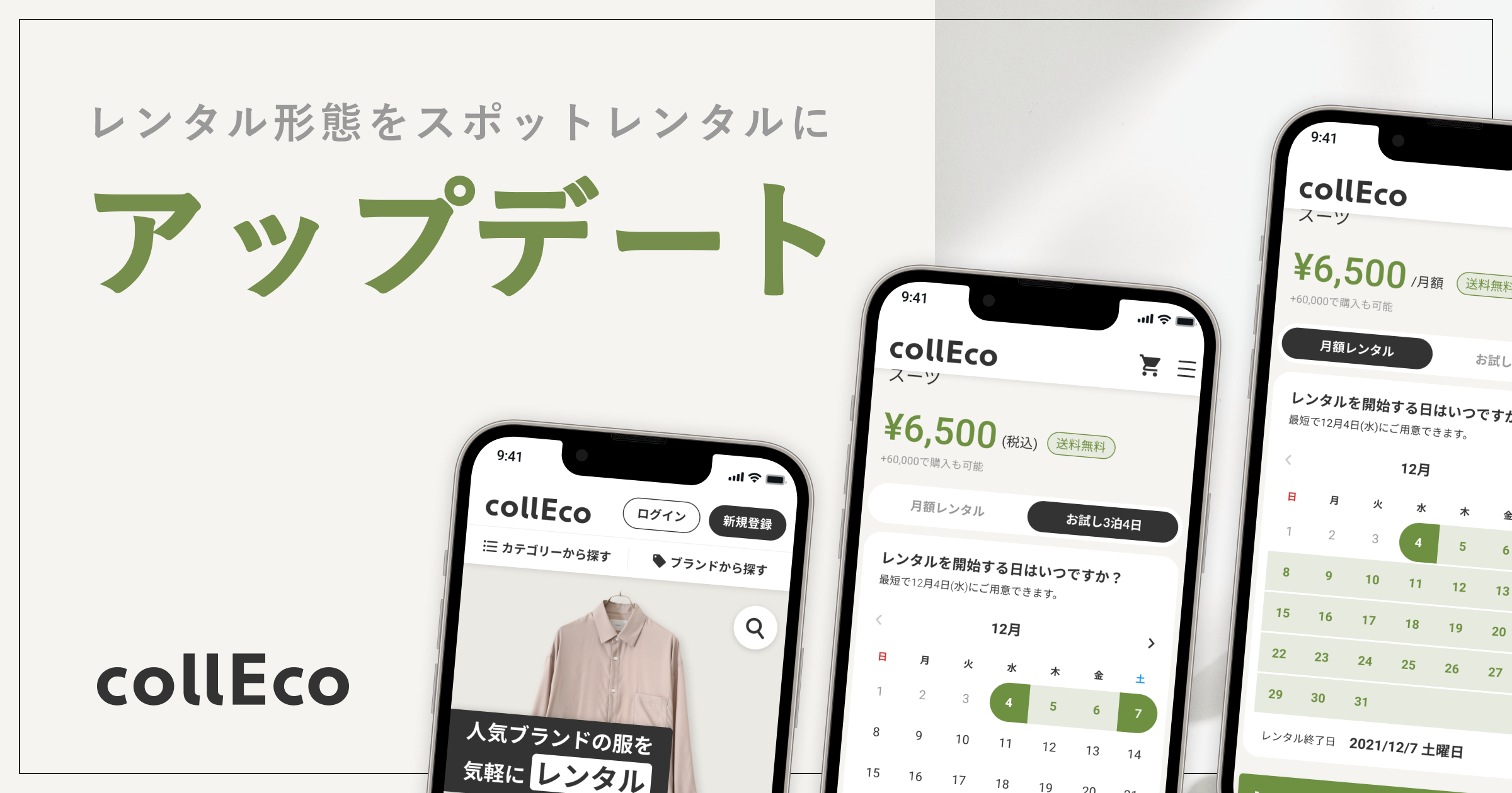 ファッションレンタルサービスの「collEco(コレコ)」レンタル形態をスポットレンタルにアップデート。
