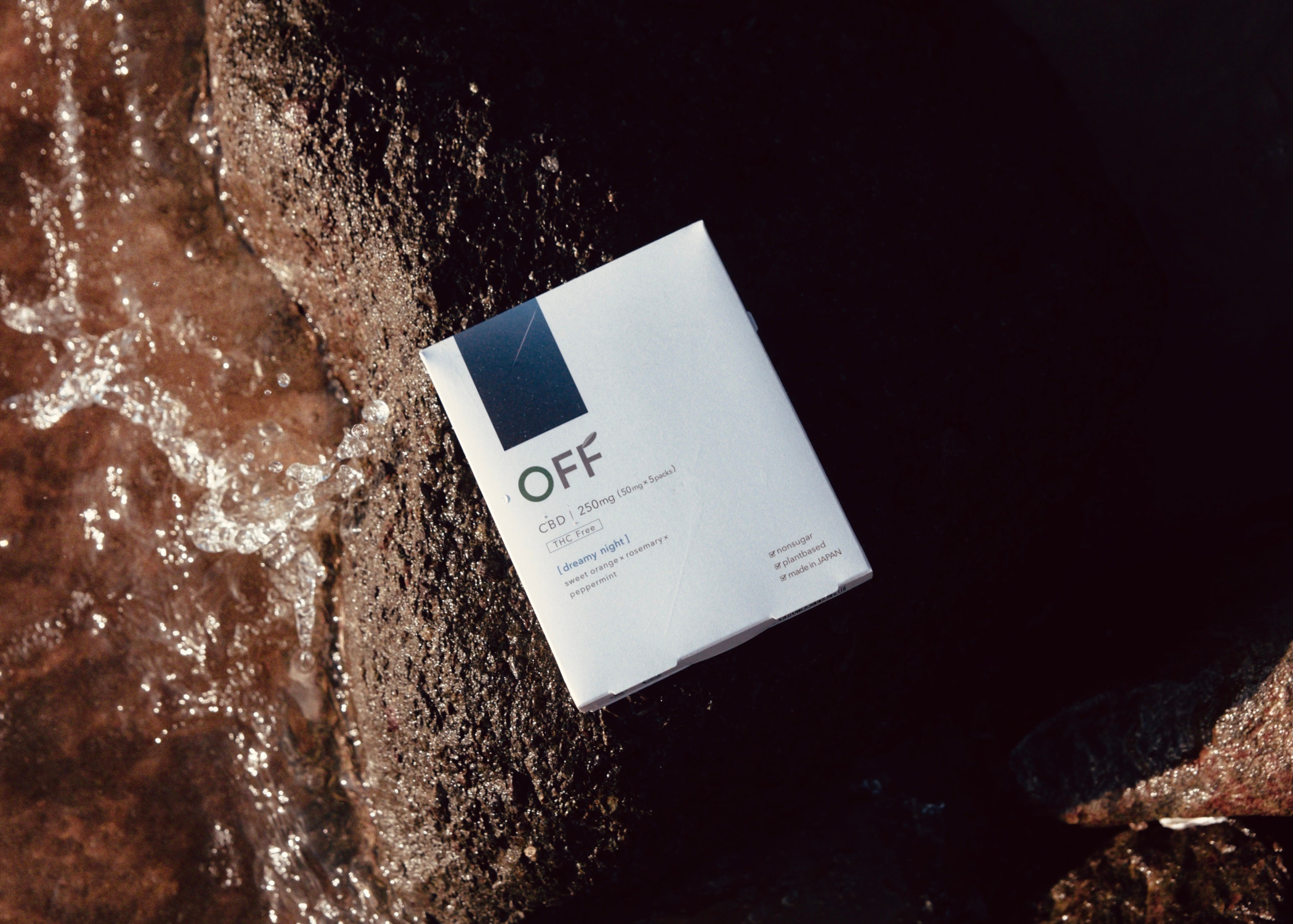 OFFは、CBDと呼ばれる自律神経の栄養素とスパに使われる香りに着想を得た天然ハーブのブレンドフレーバーを利用した、ウェルネス飲料です。